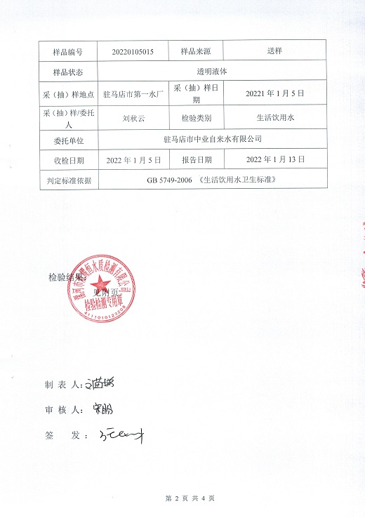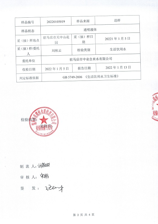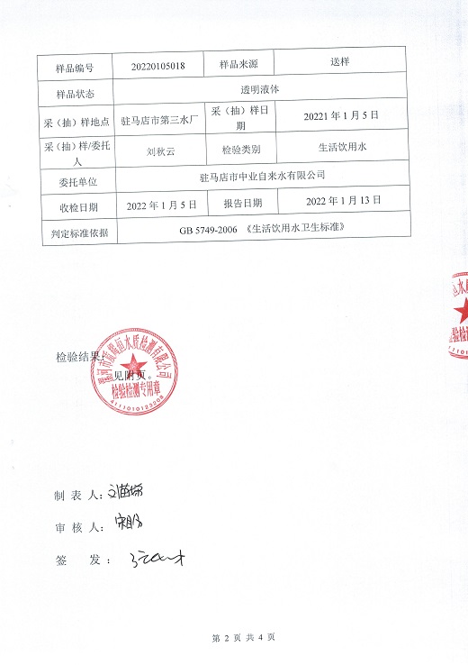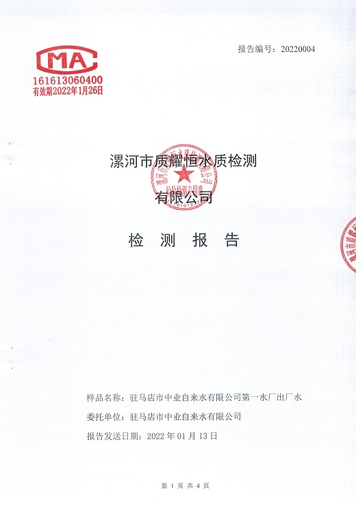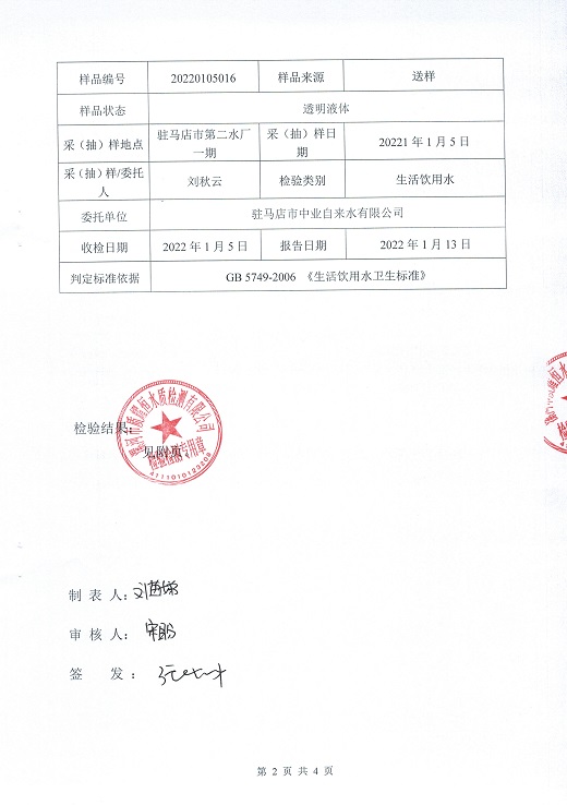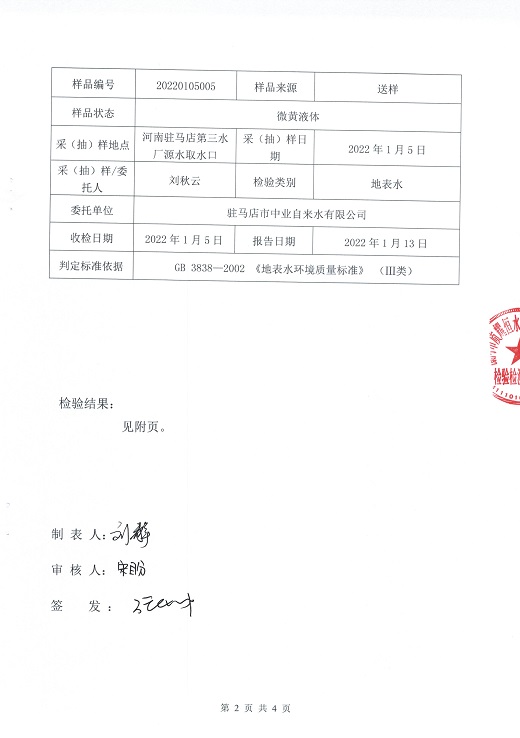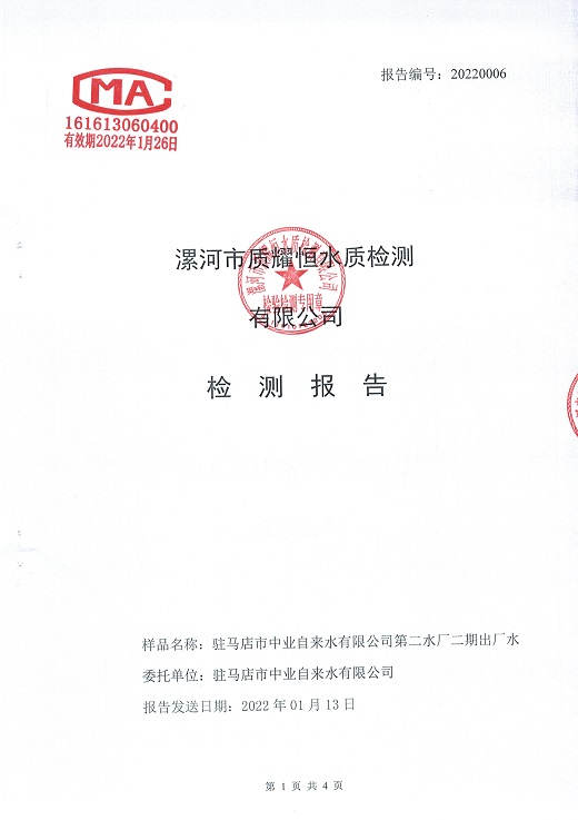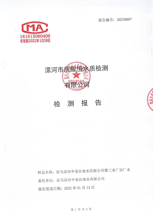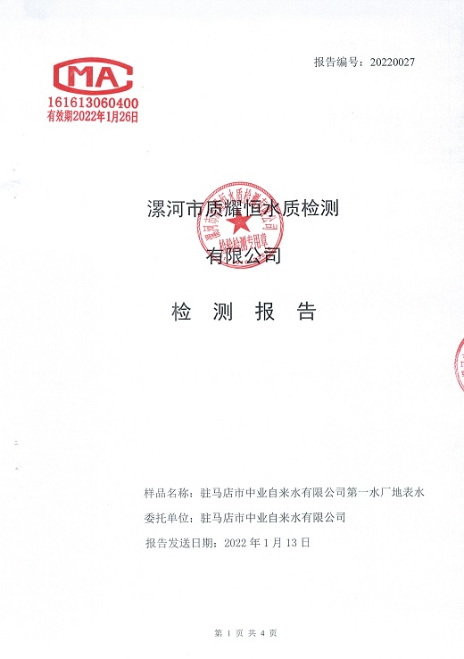 2022年1月水质检测报告
