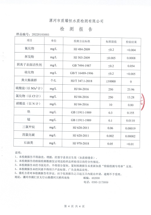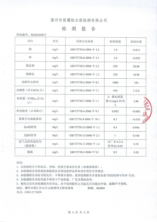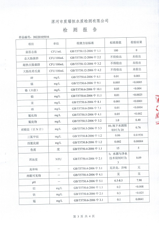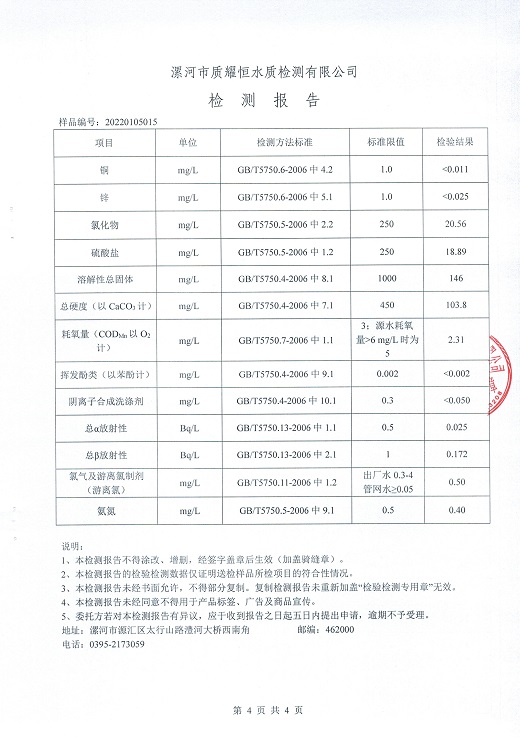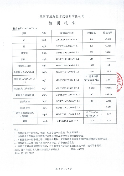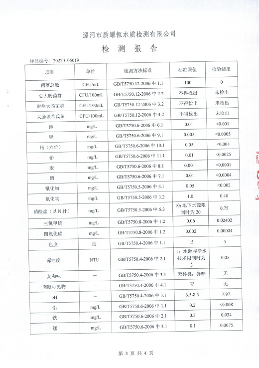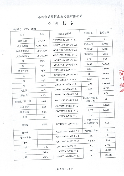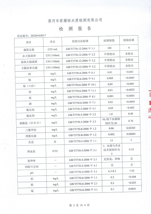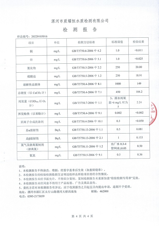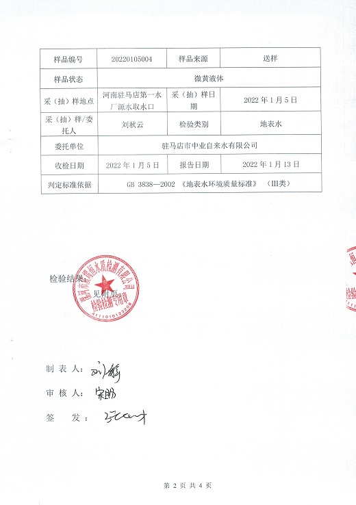 2022年1月水质检测报告