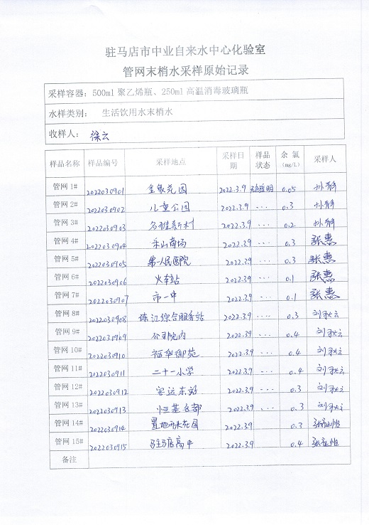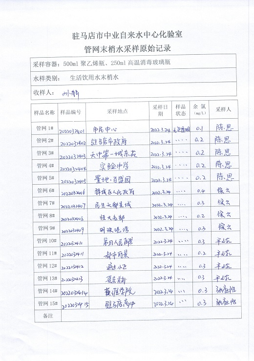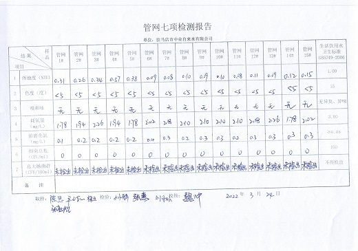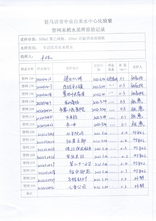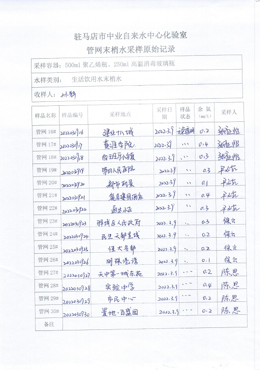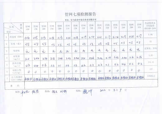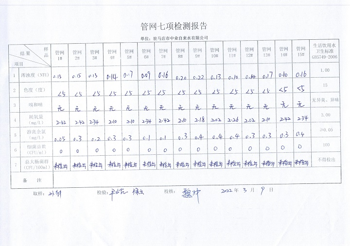 2022年3月管网水质监测数据