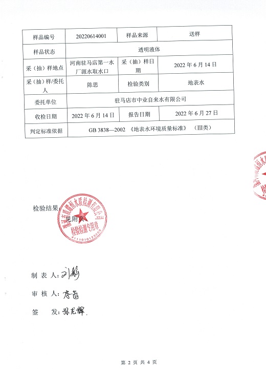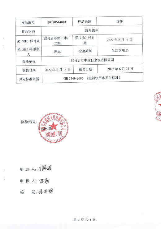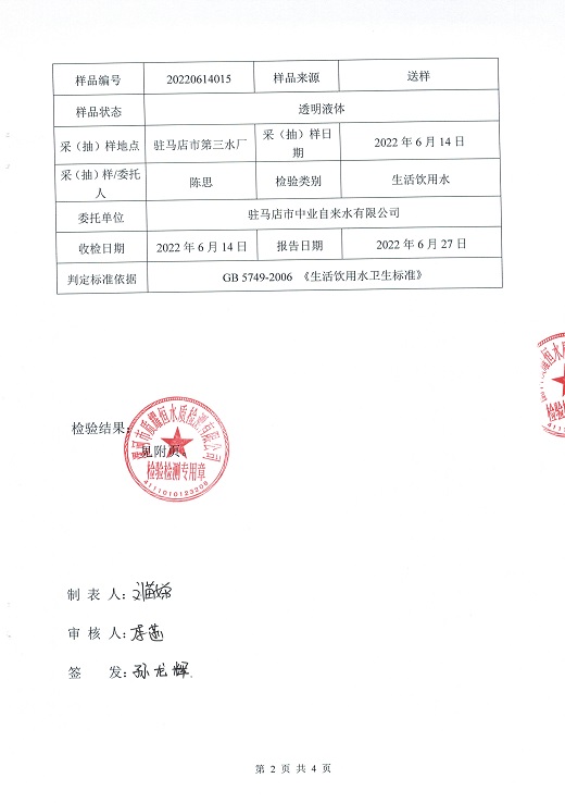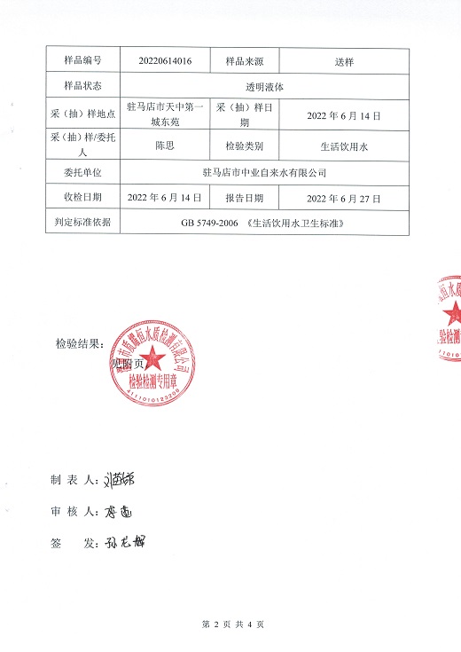 2022年6月水质检测报告