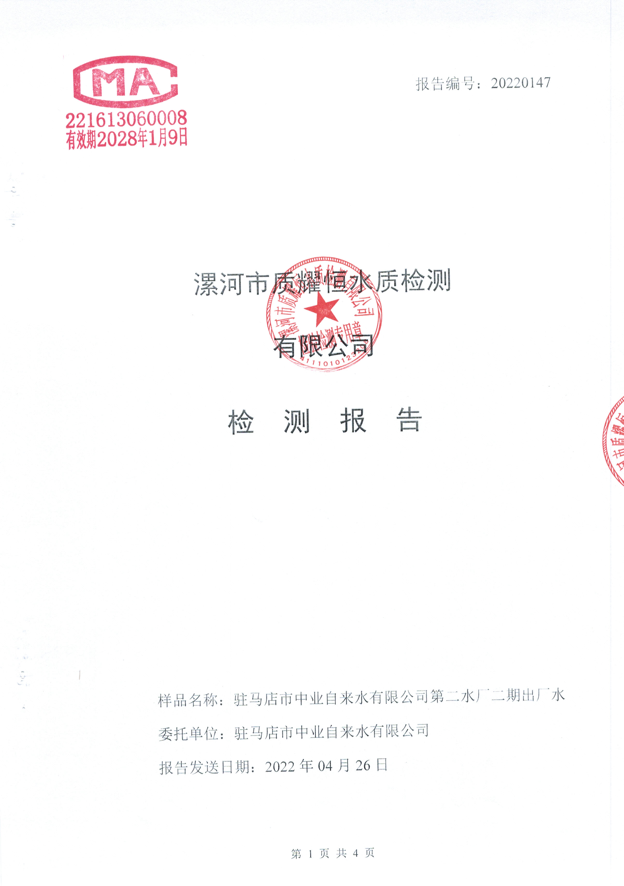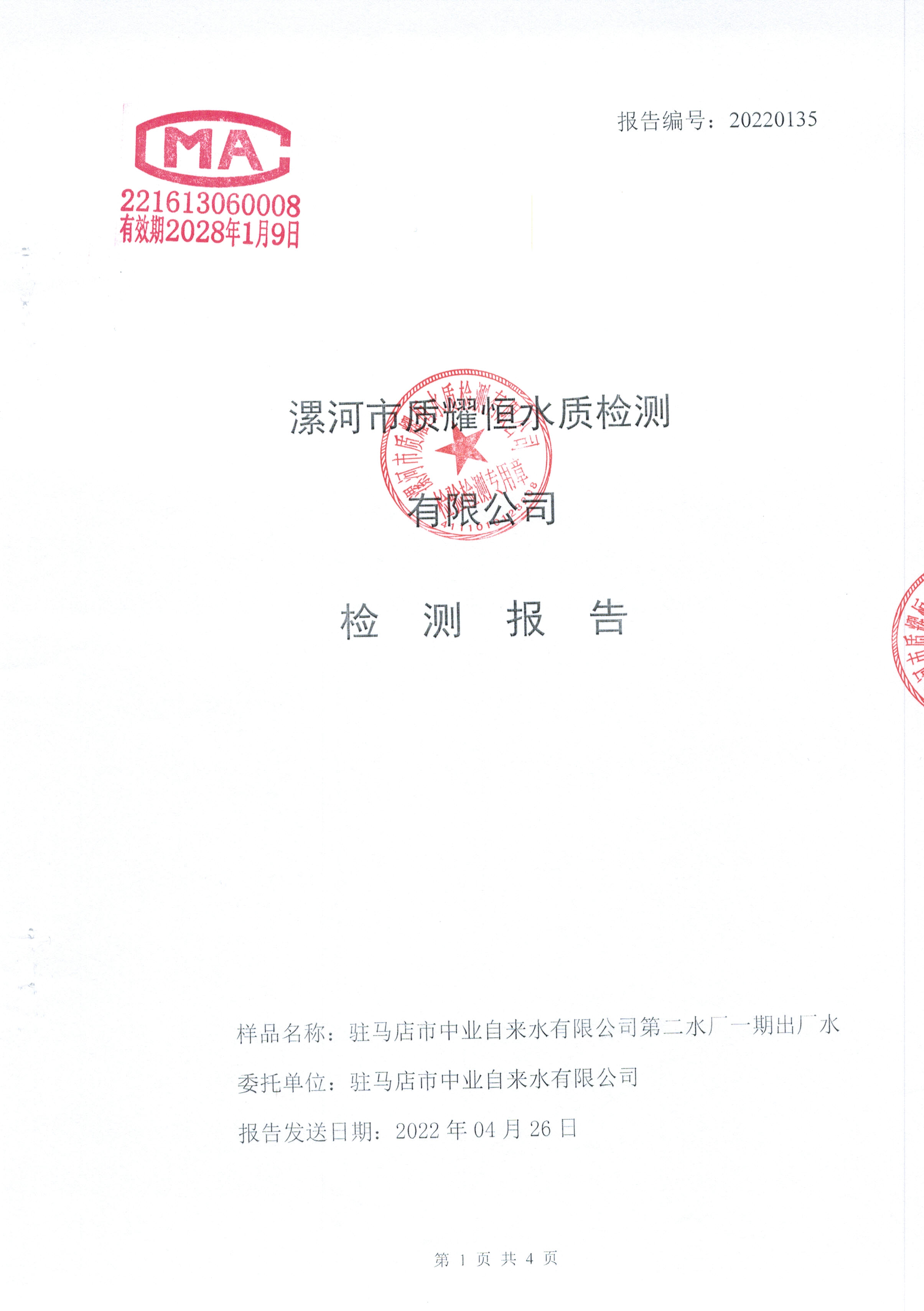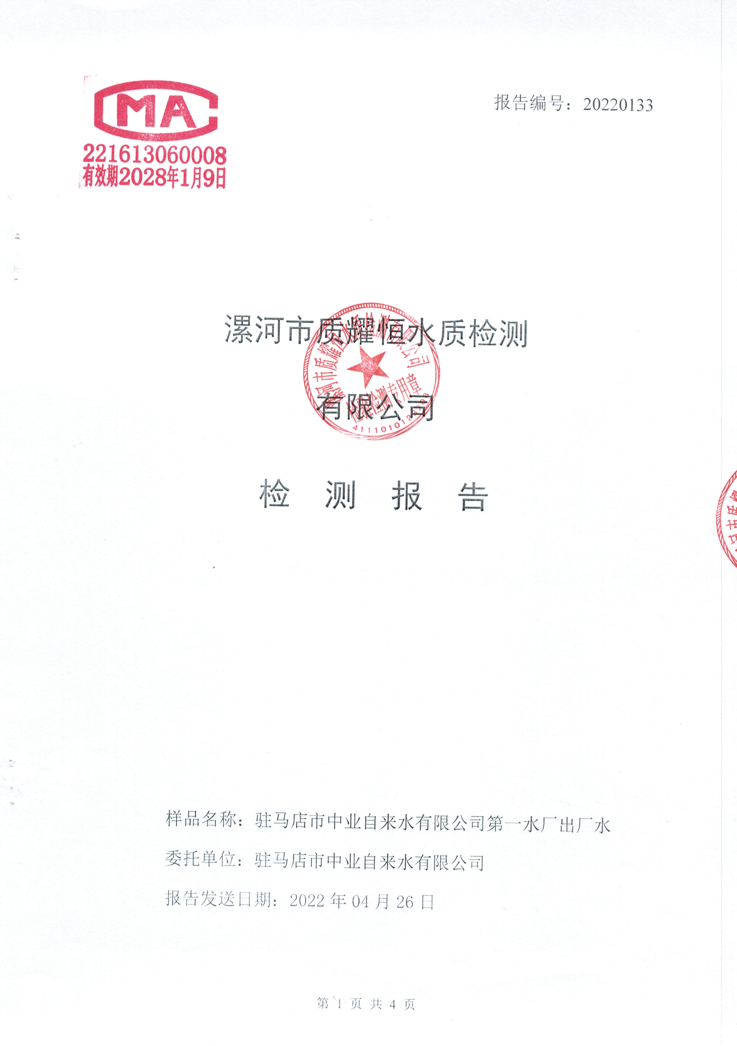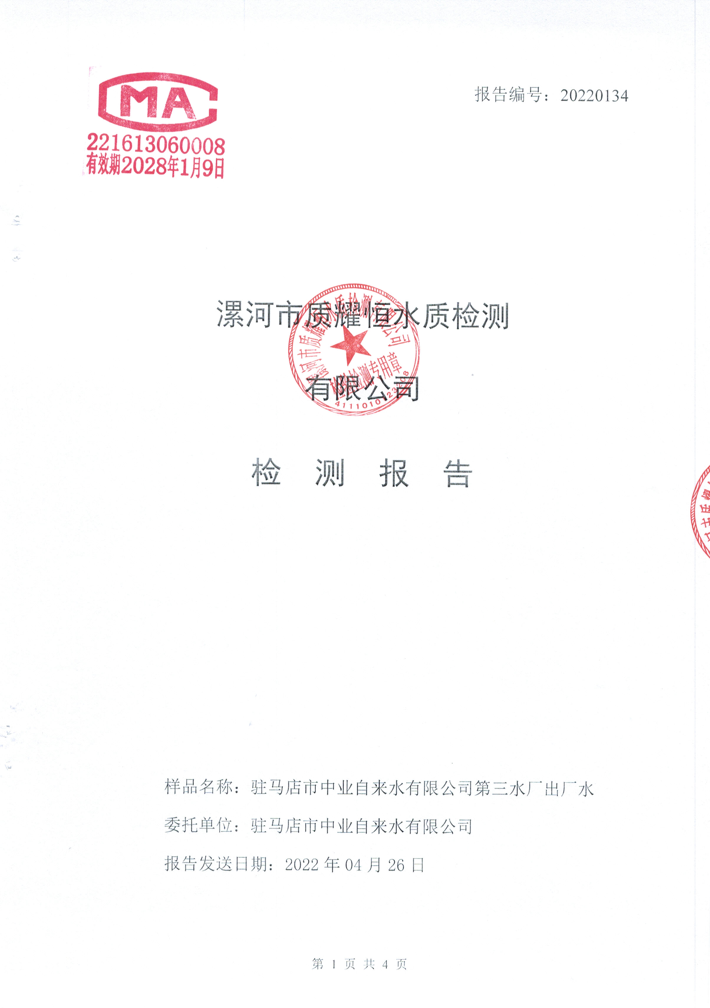2022年4月水质检测报告