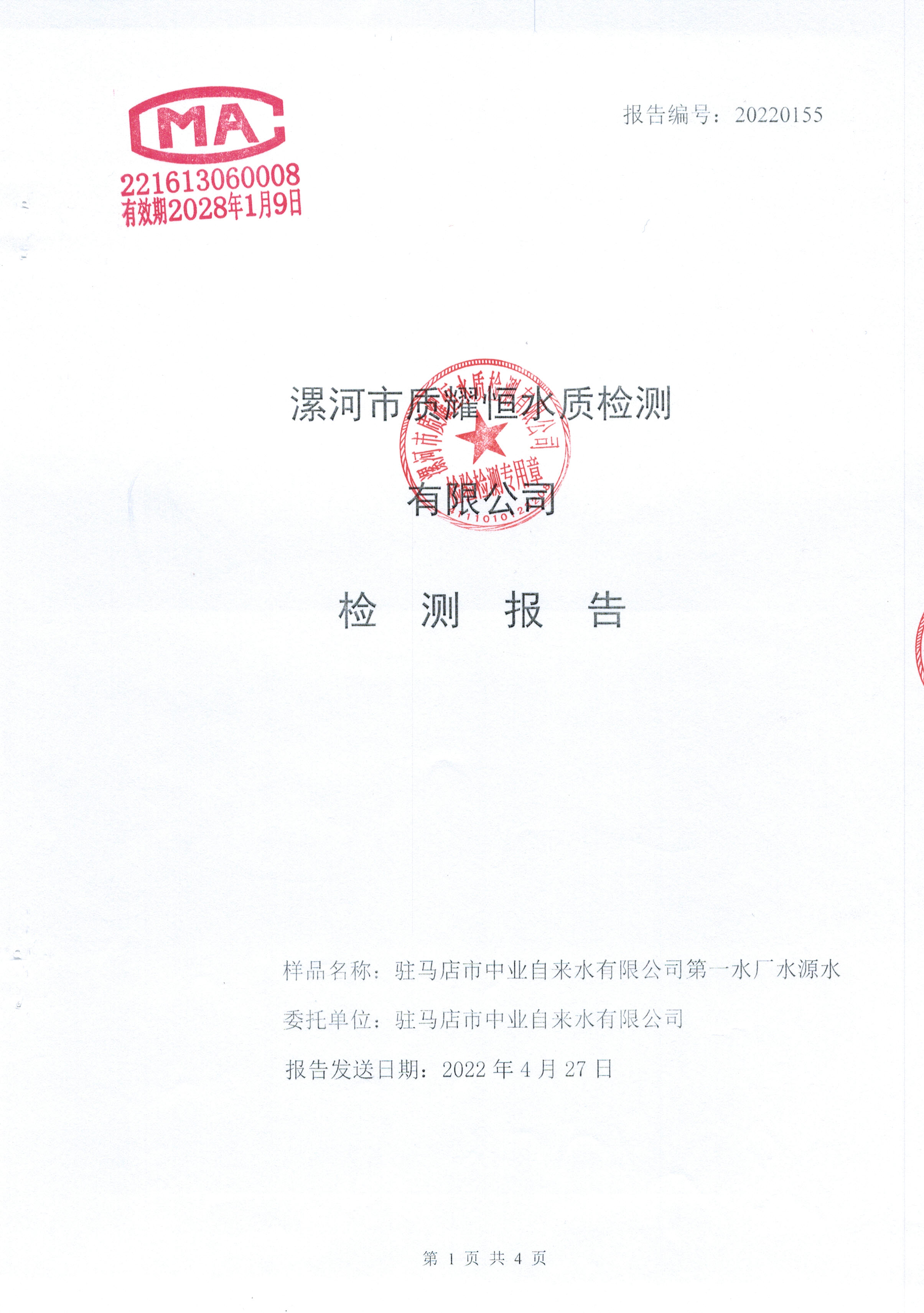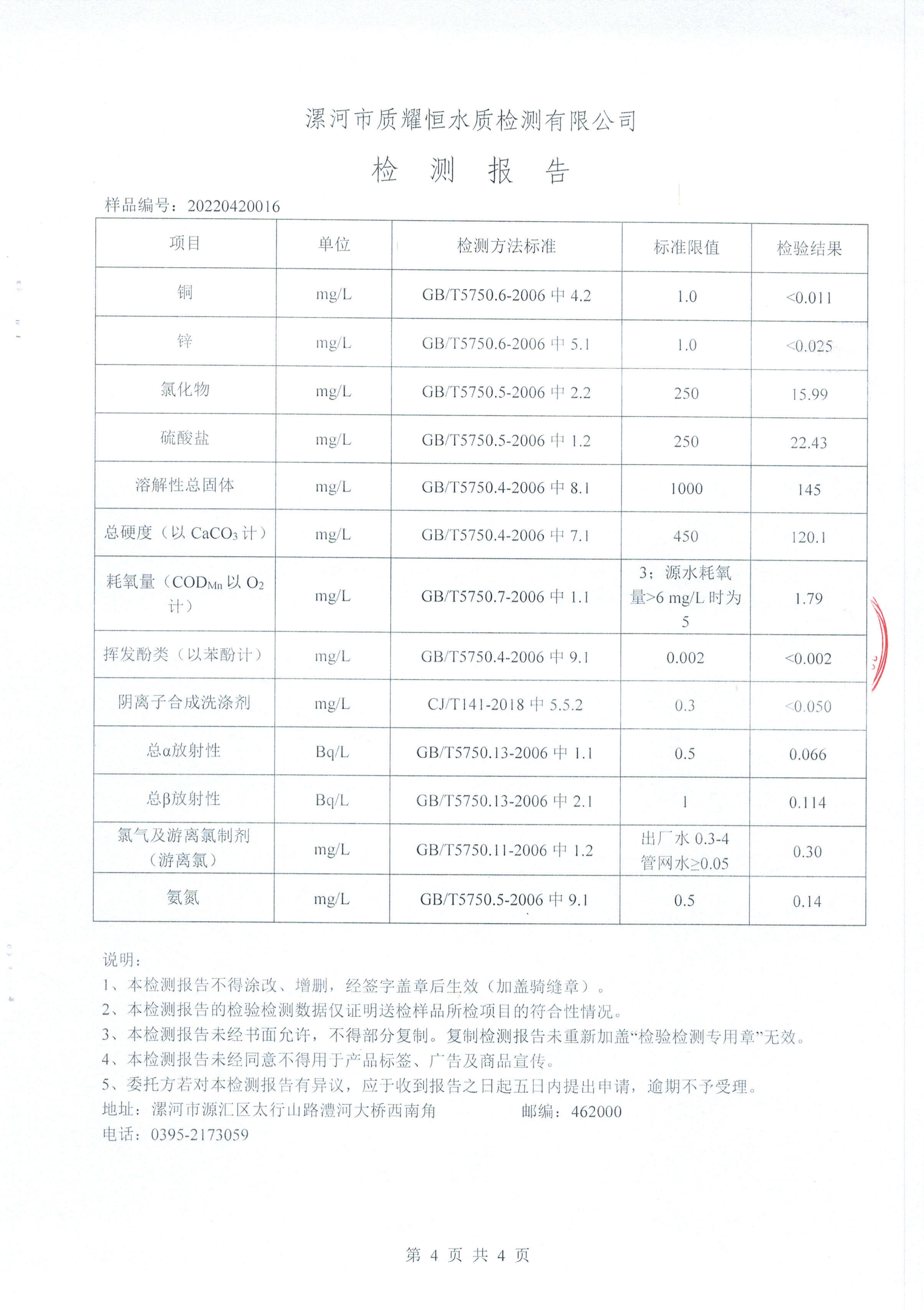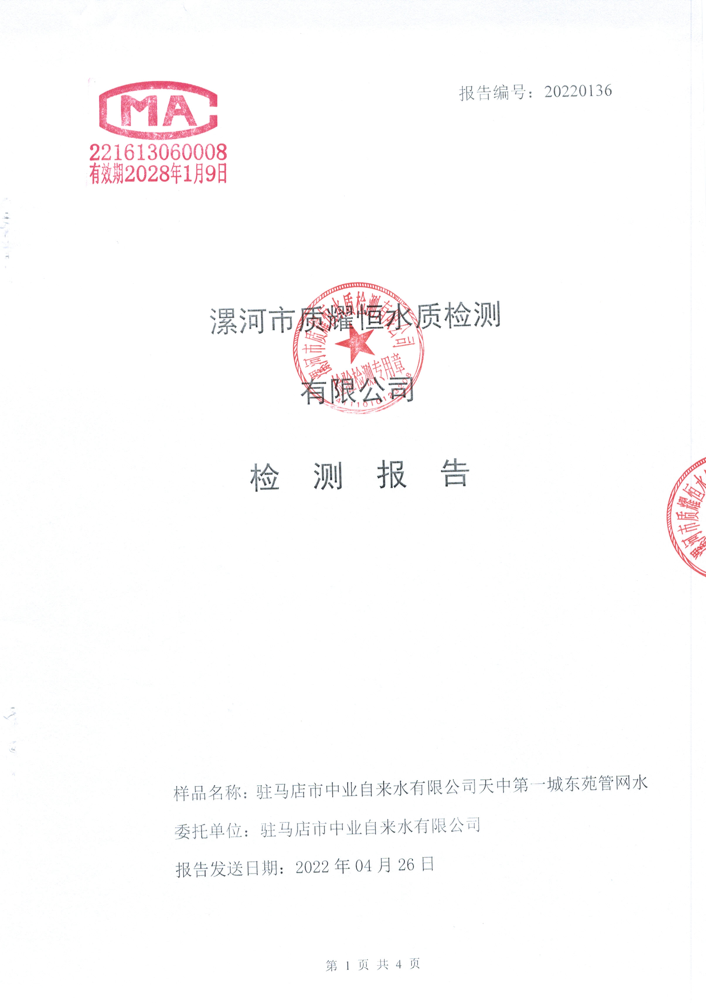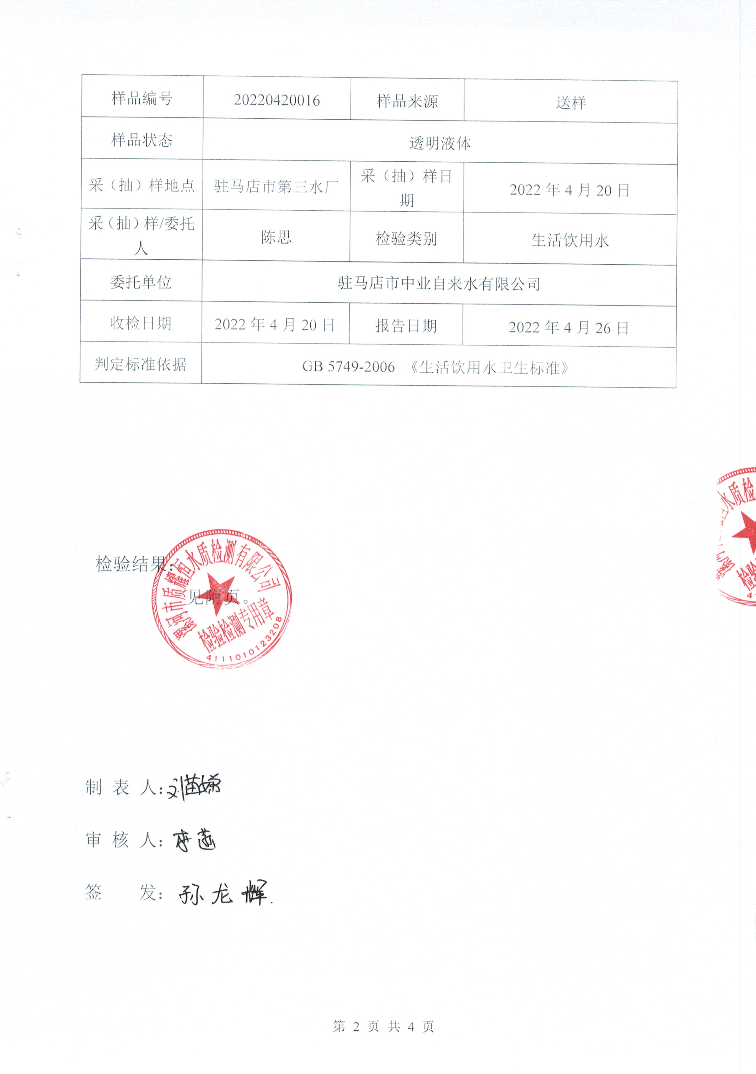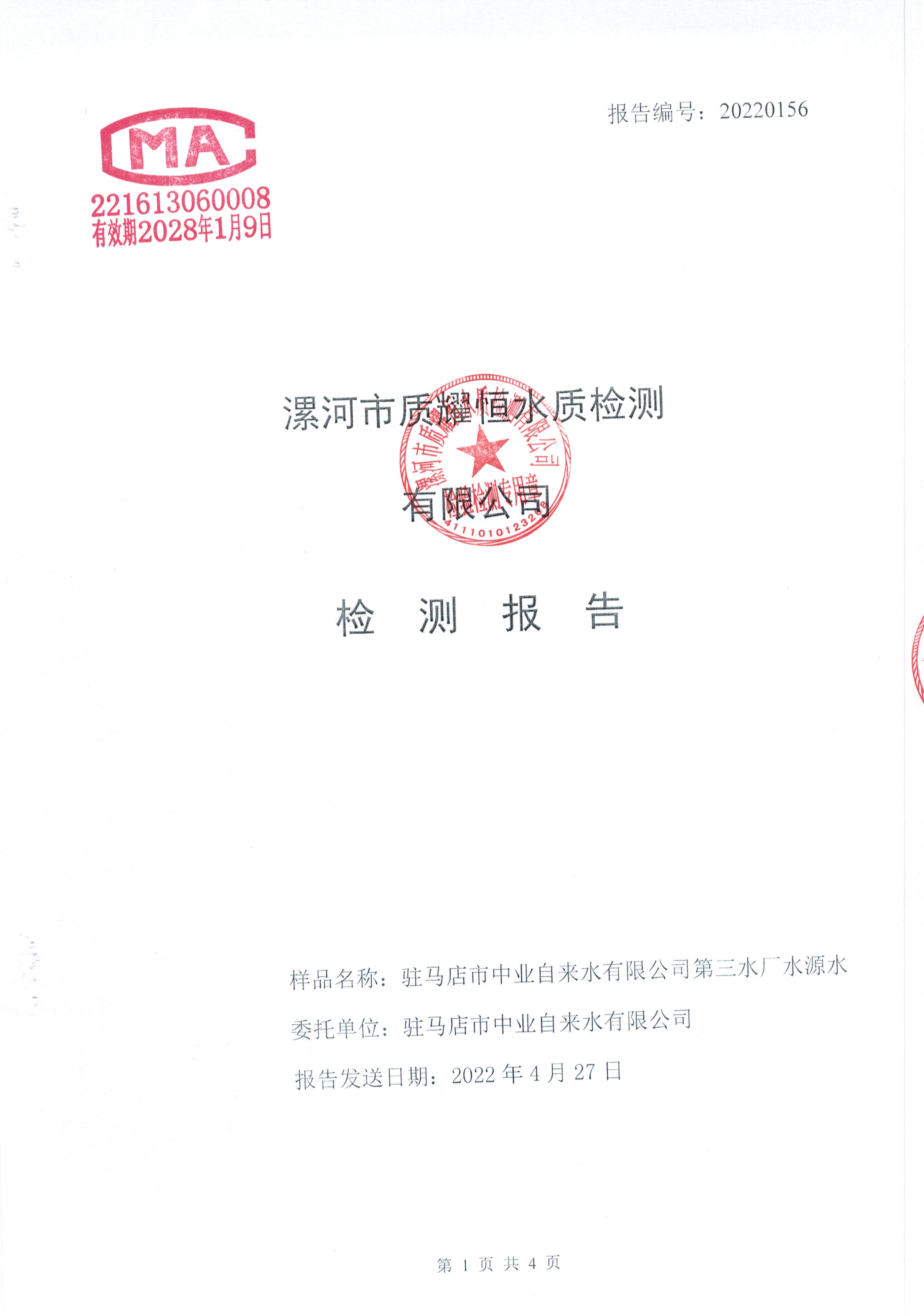 2022年4月水质检测报告
