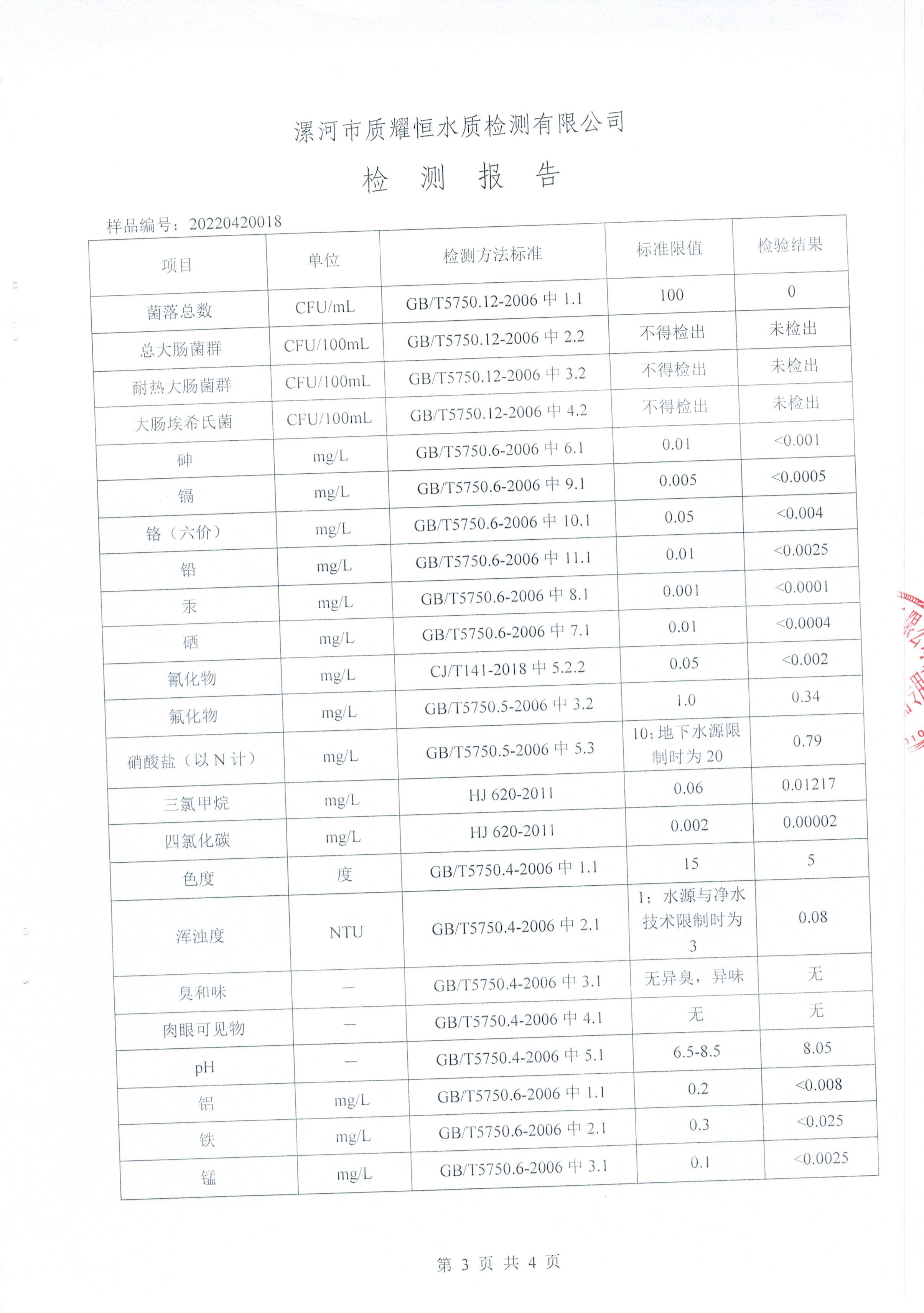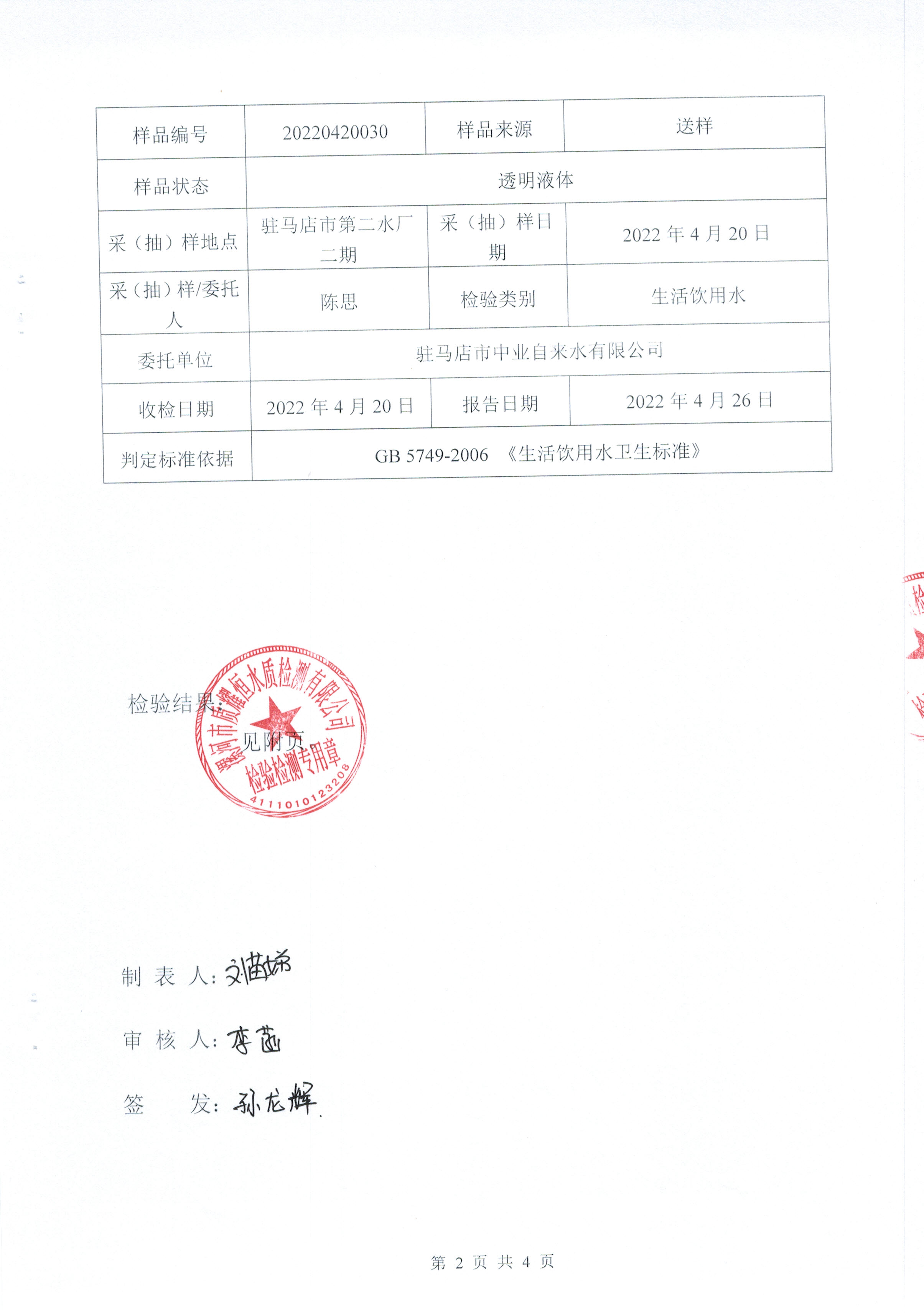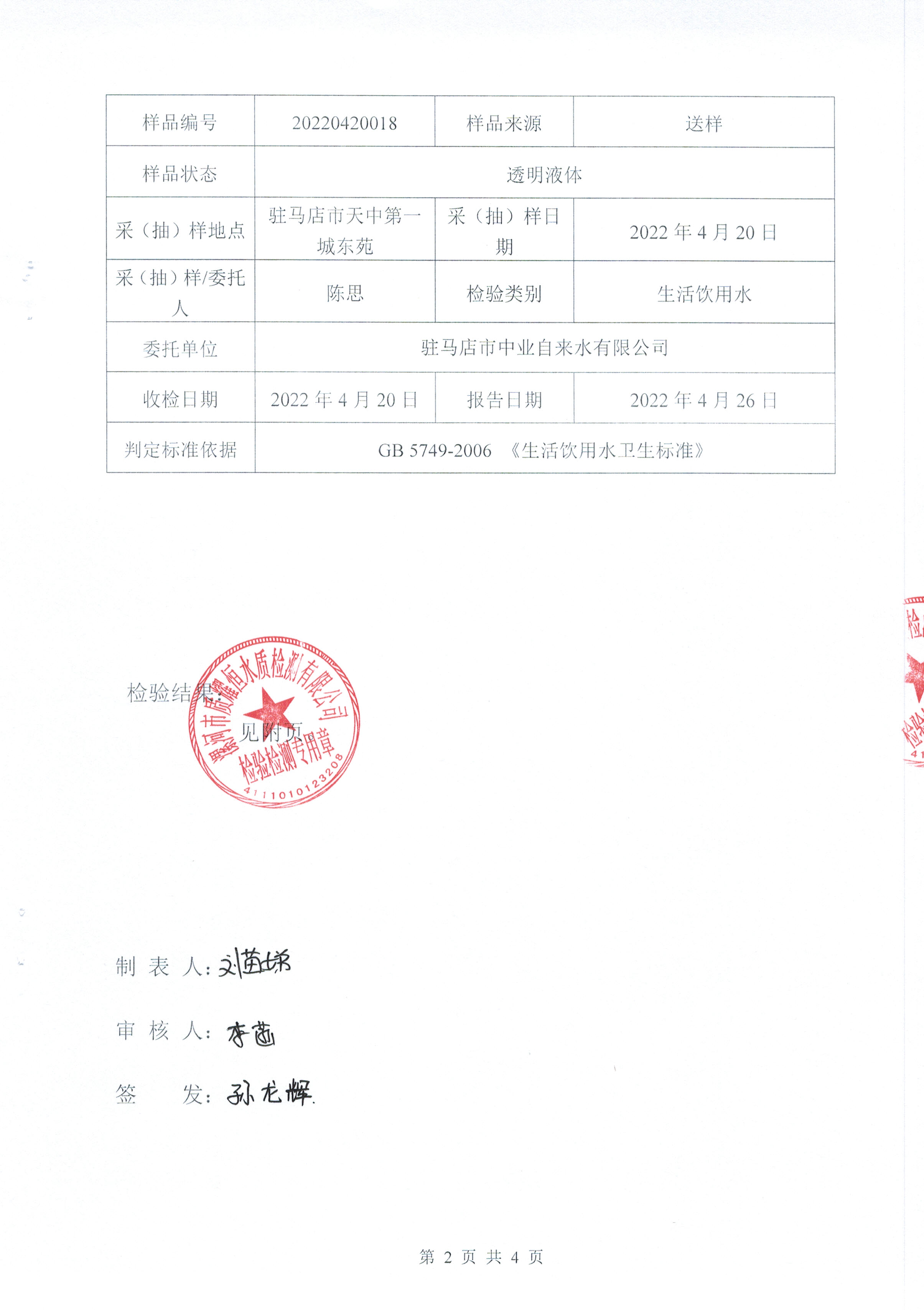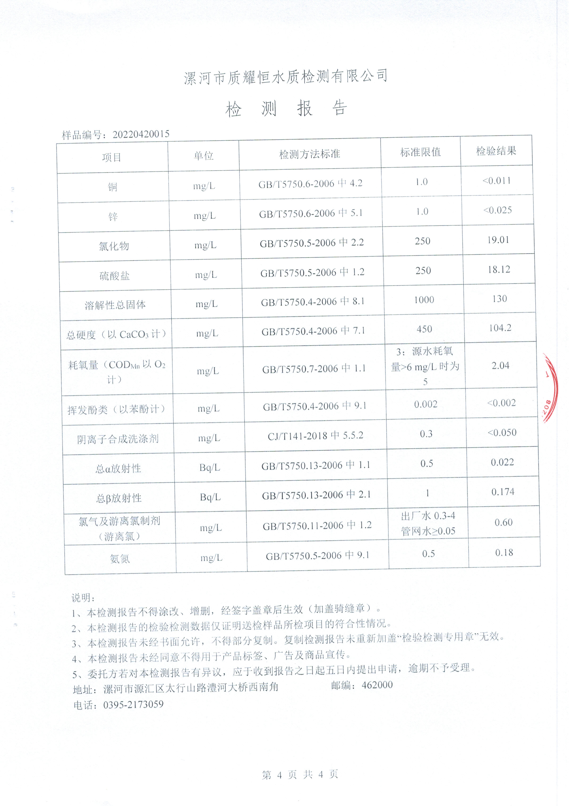 2022年4月水质检测报告