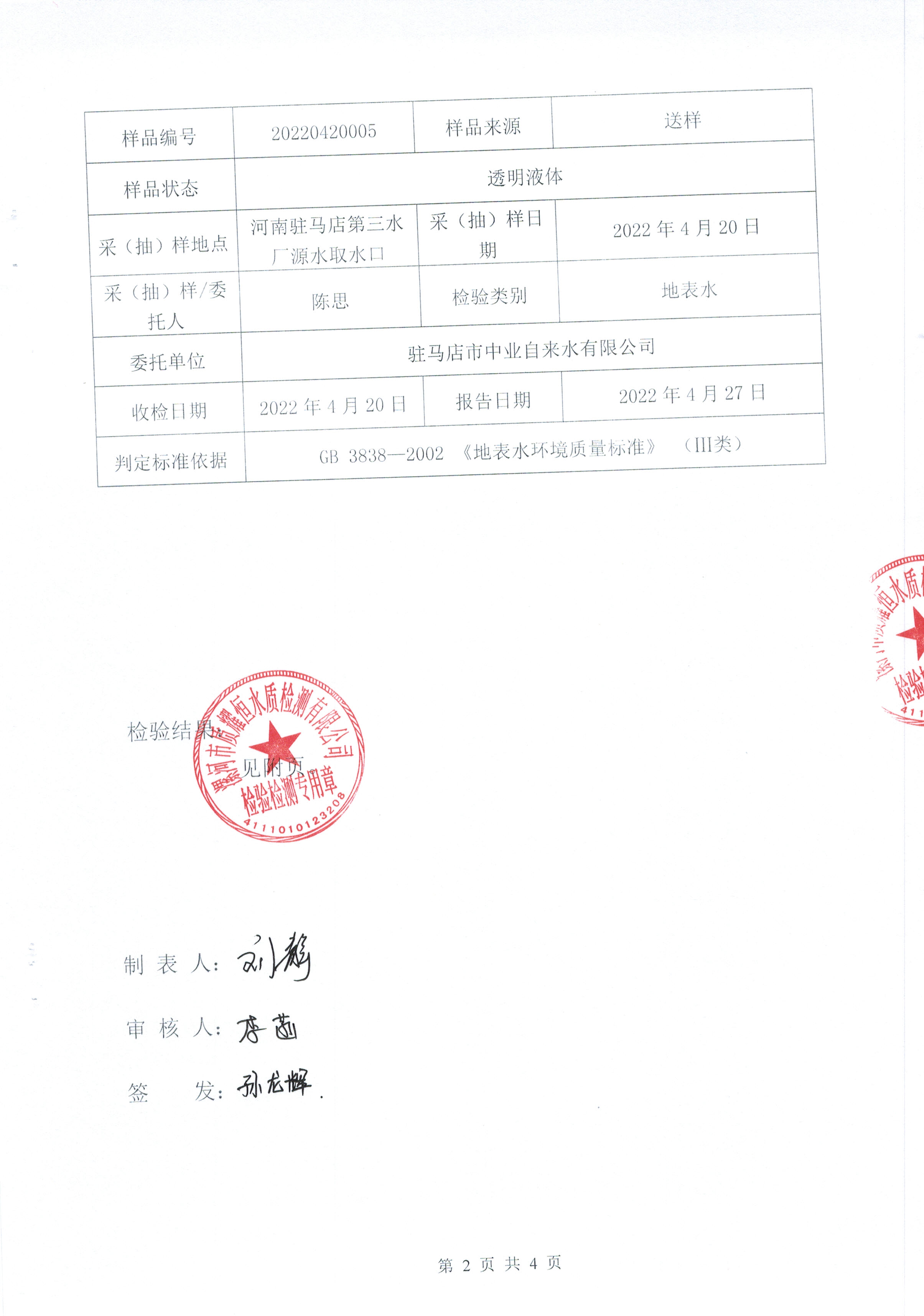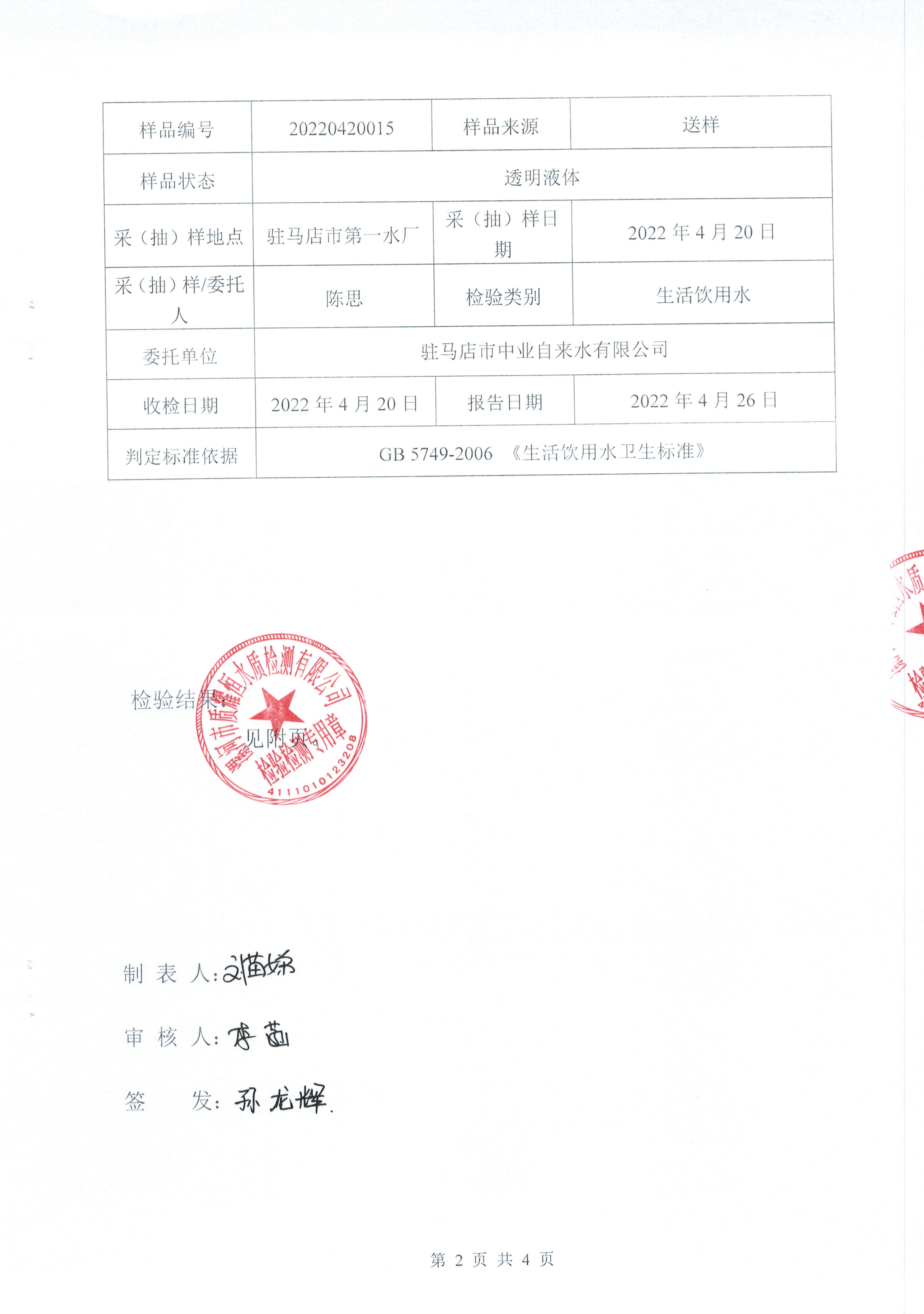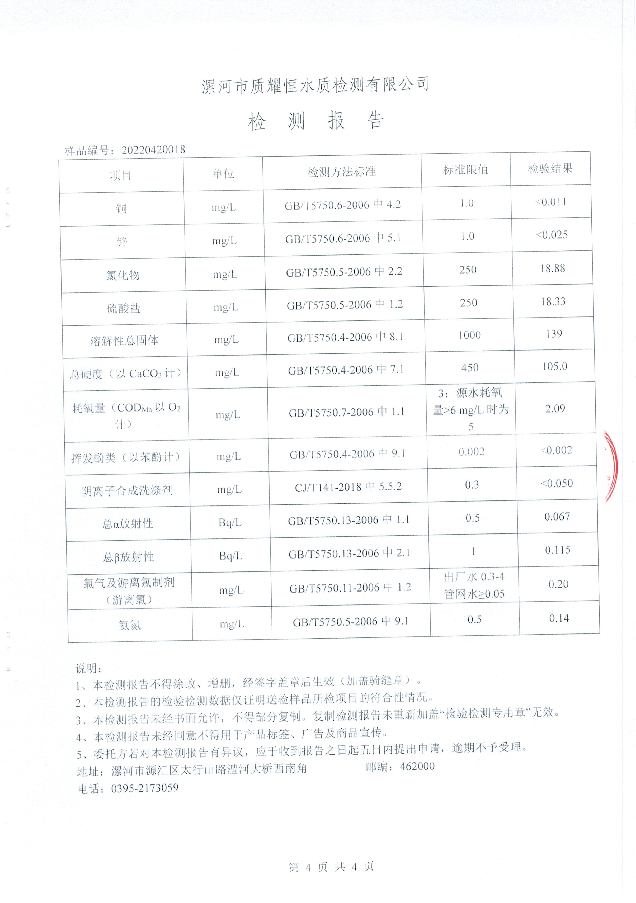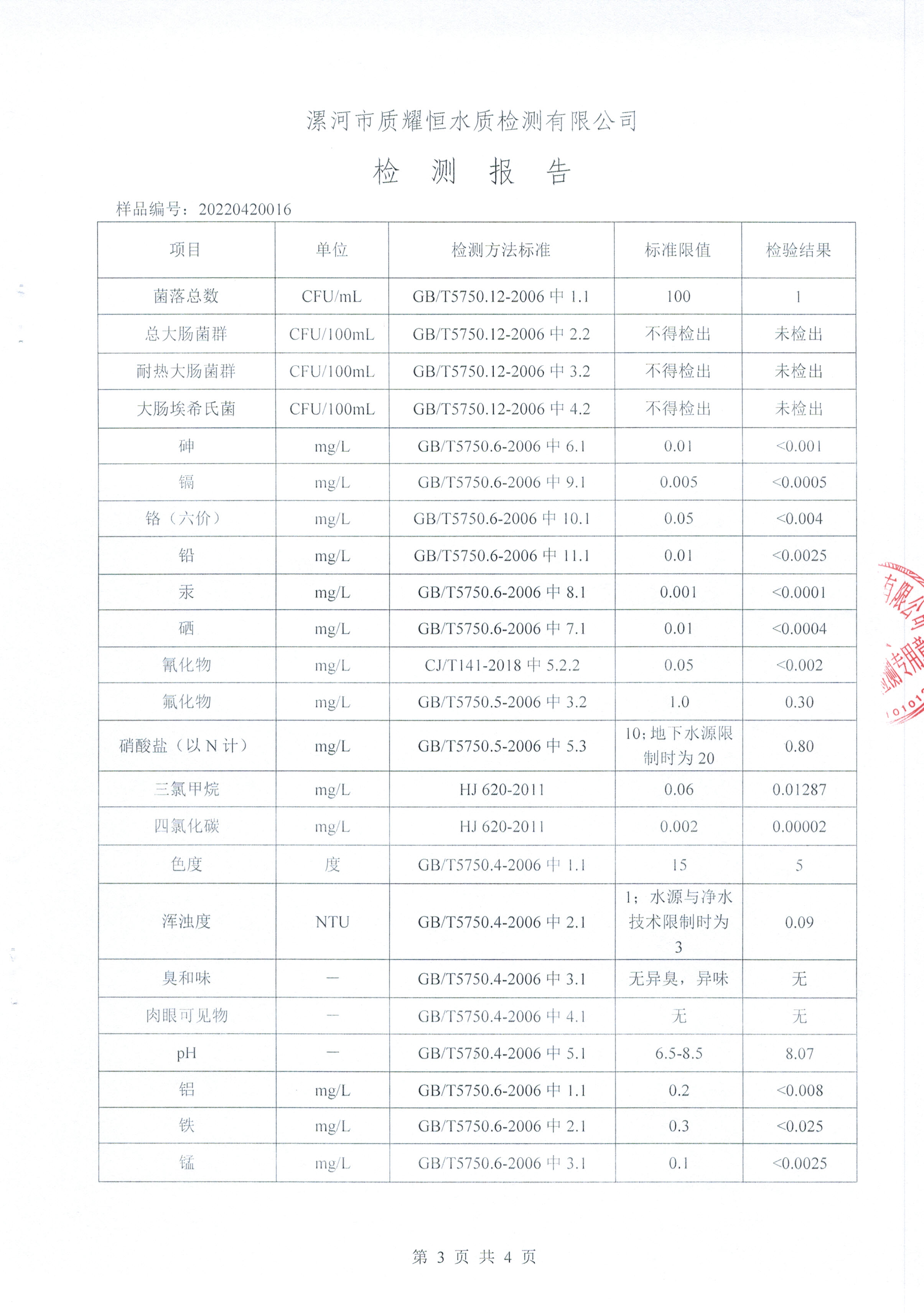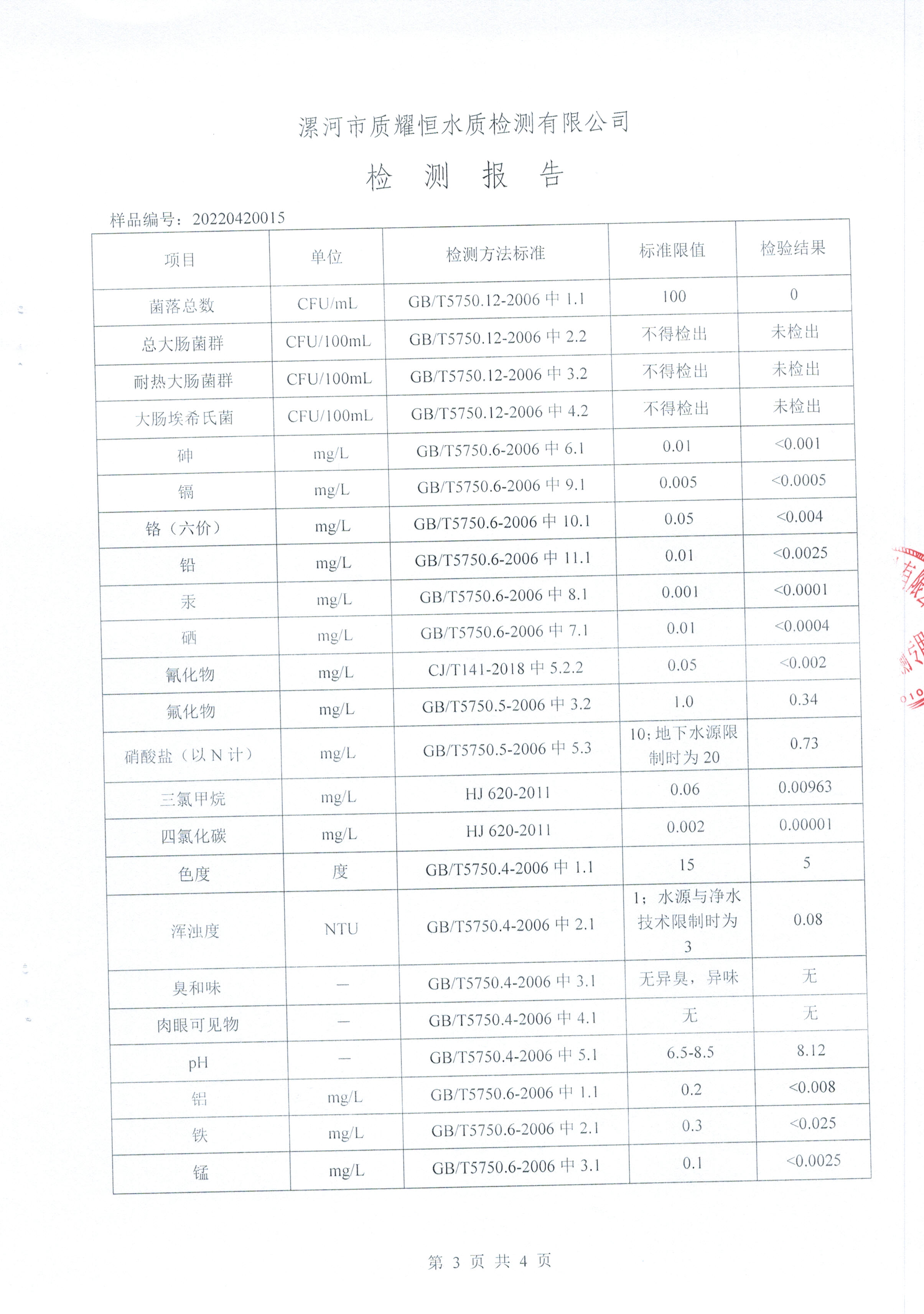 2022年4月水质检测报告