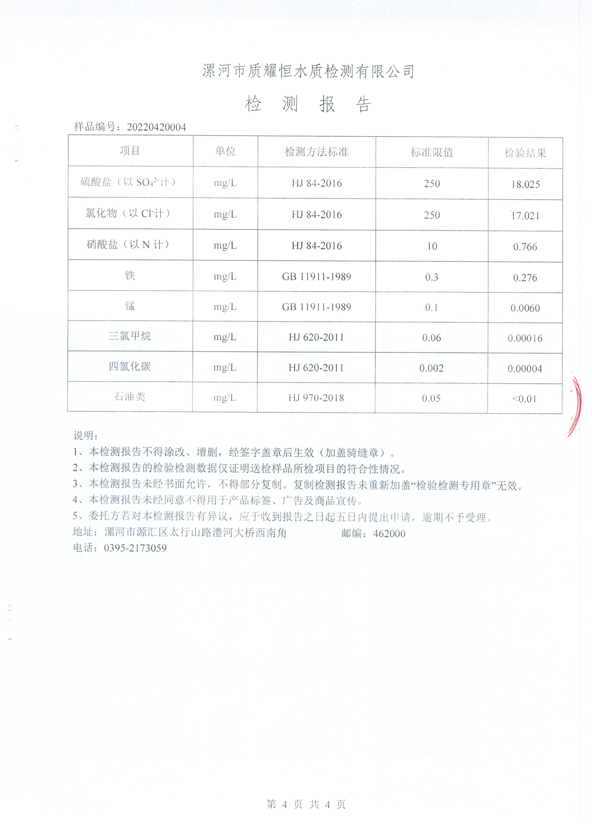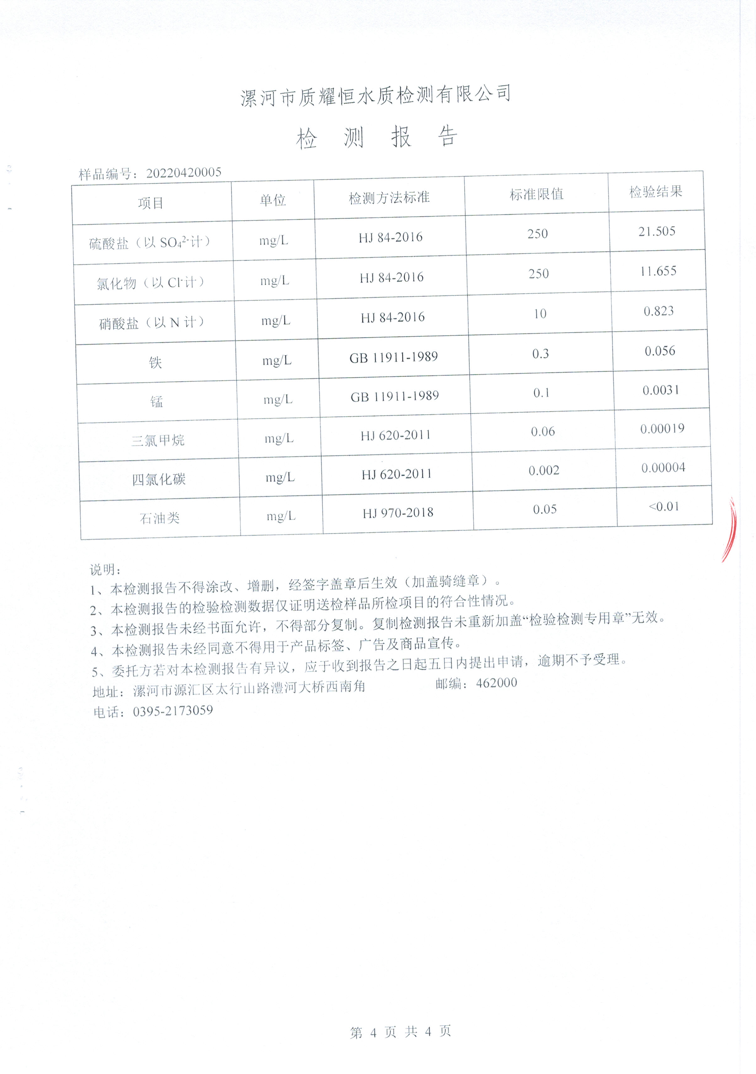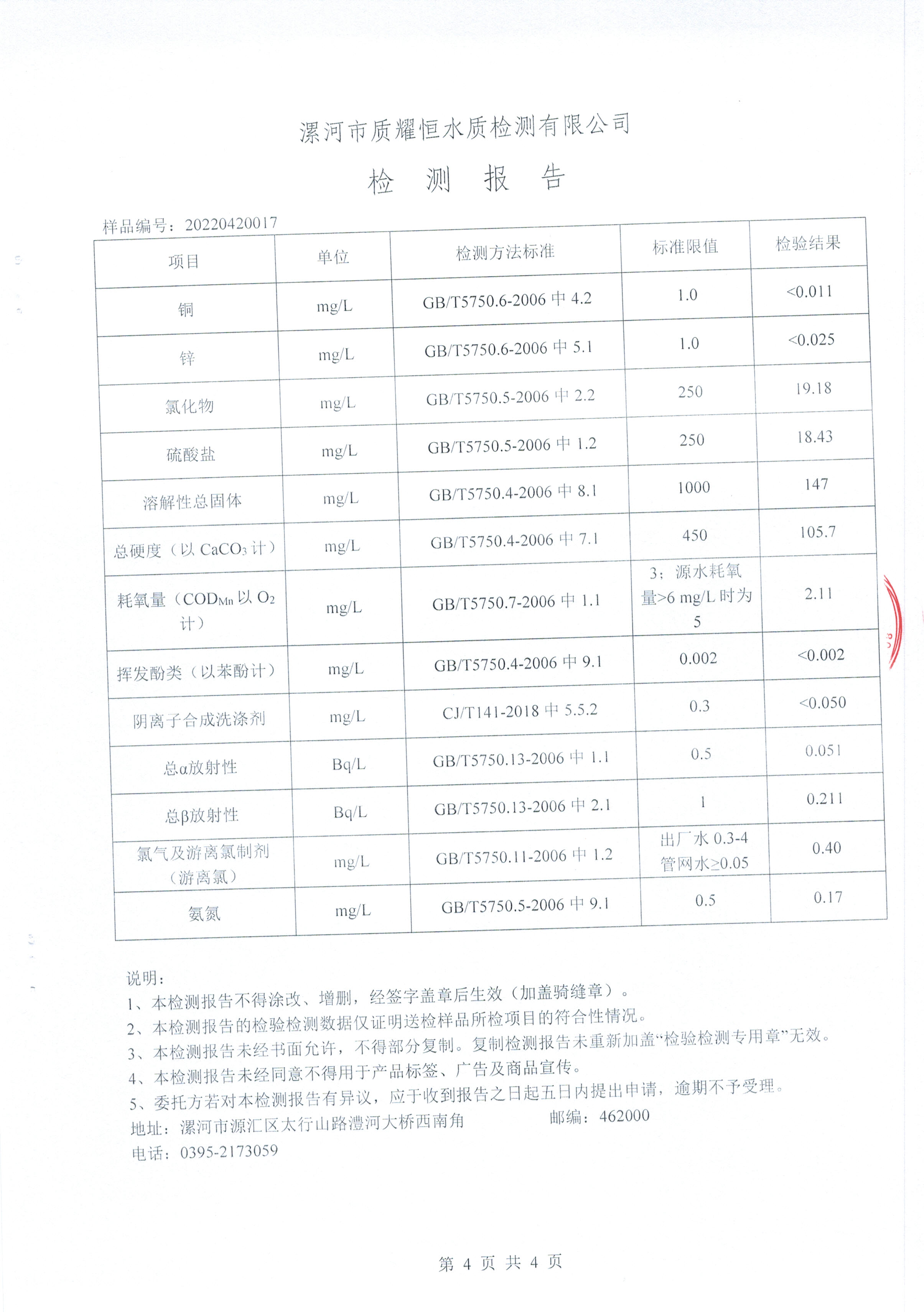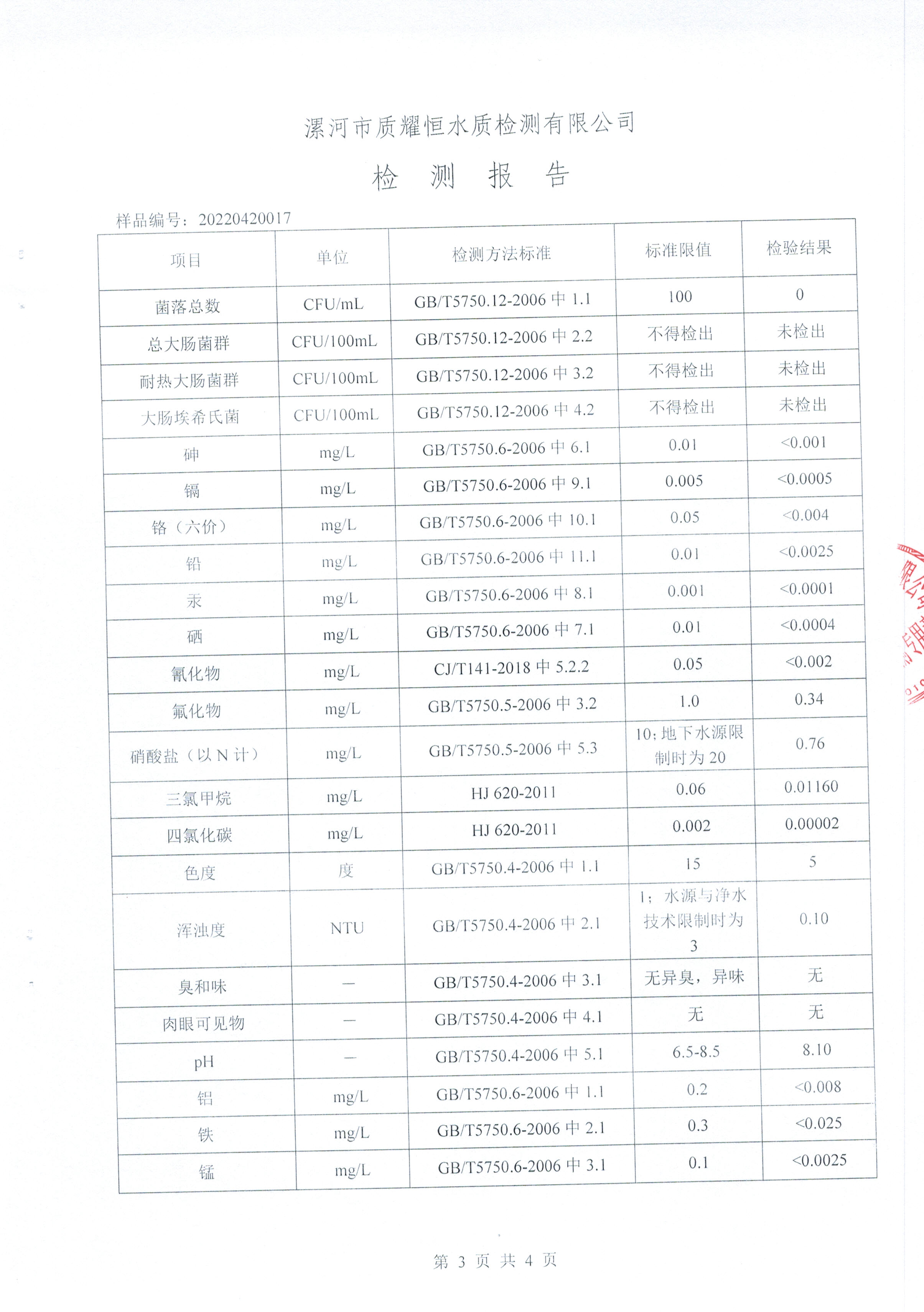 2022年4月水质检测报告