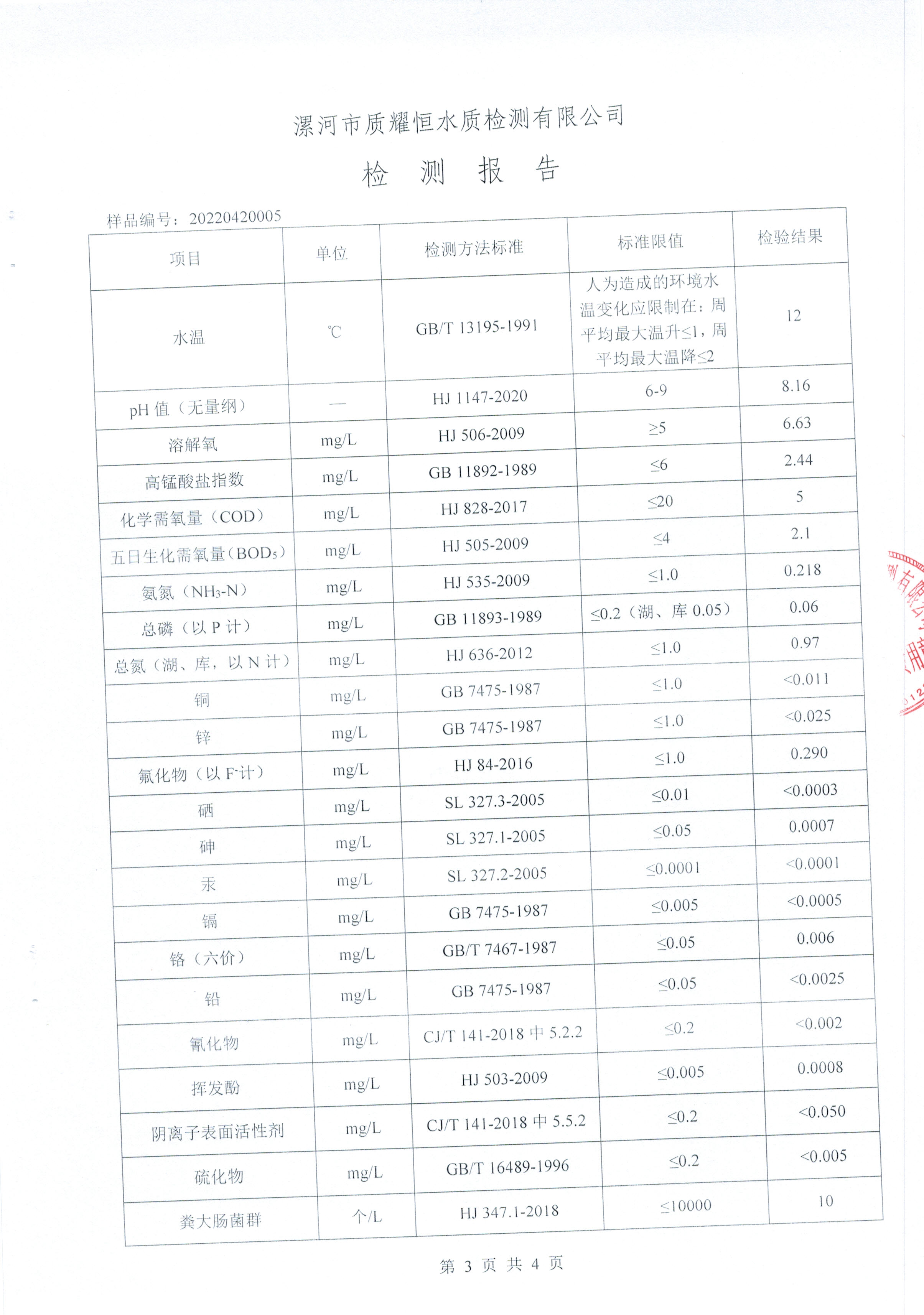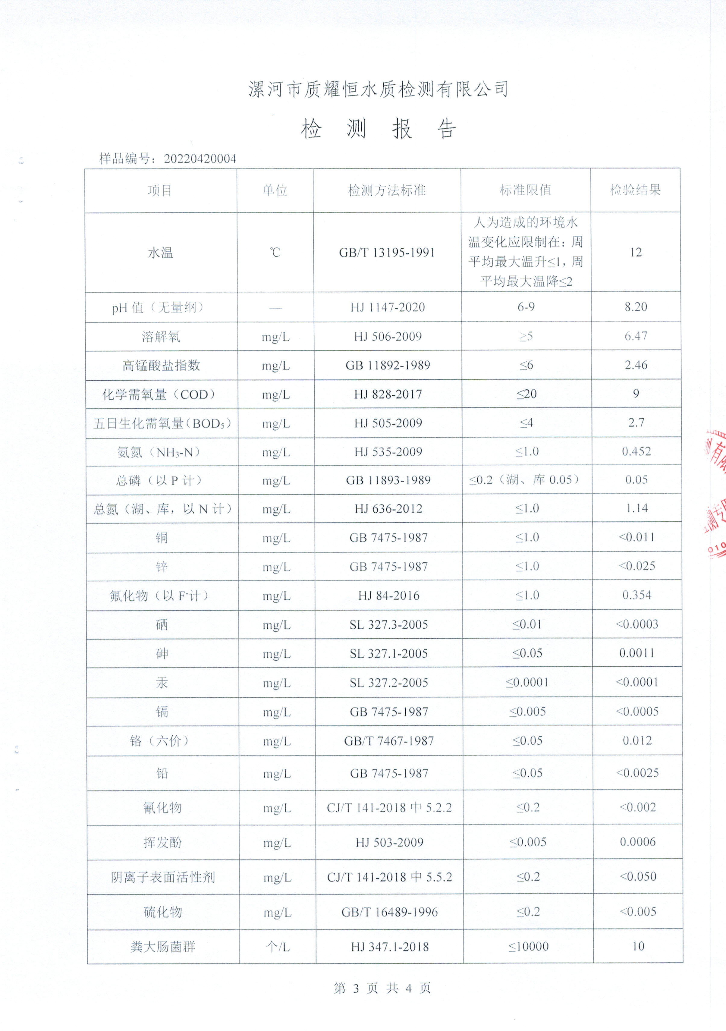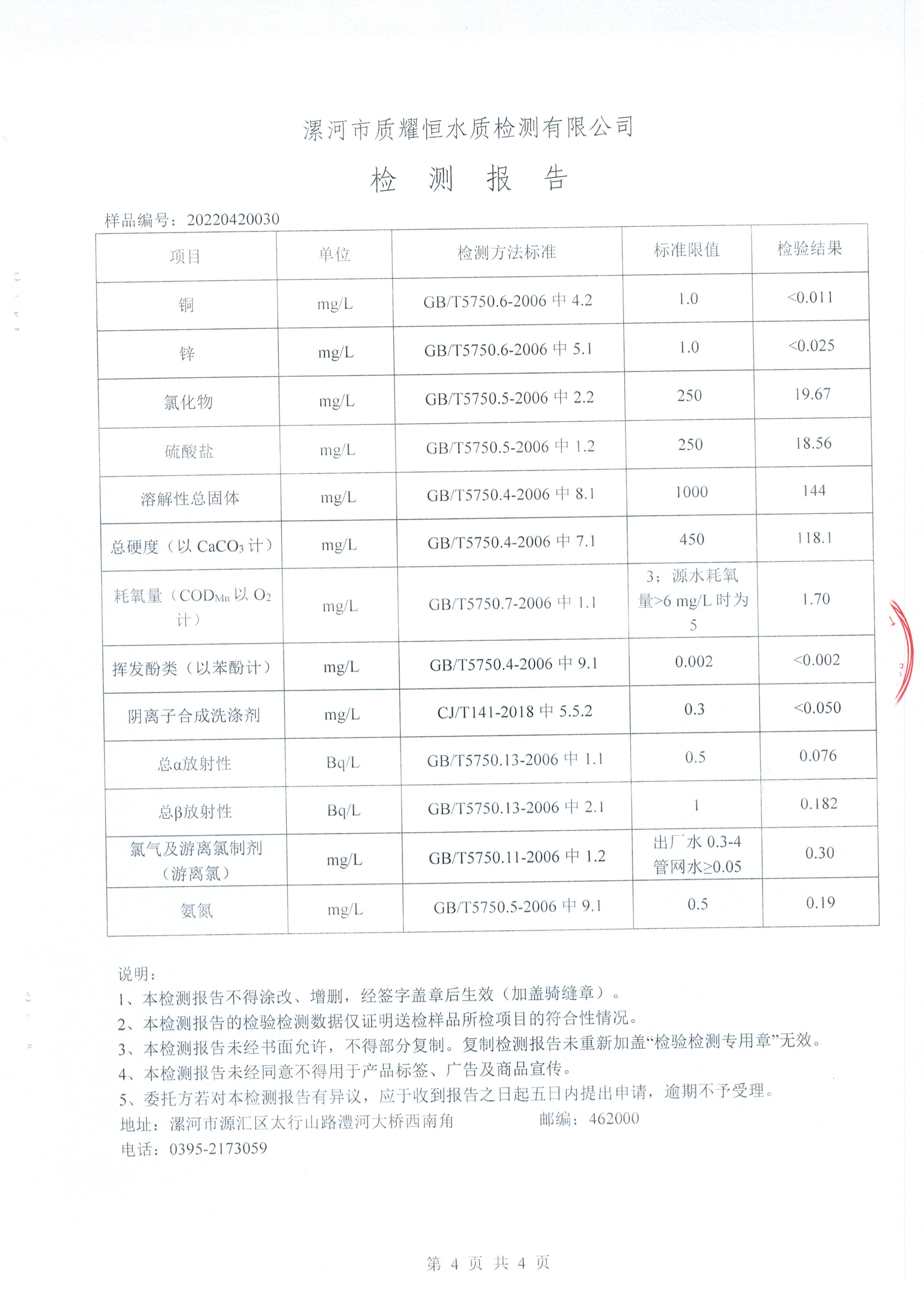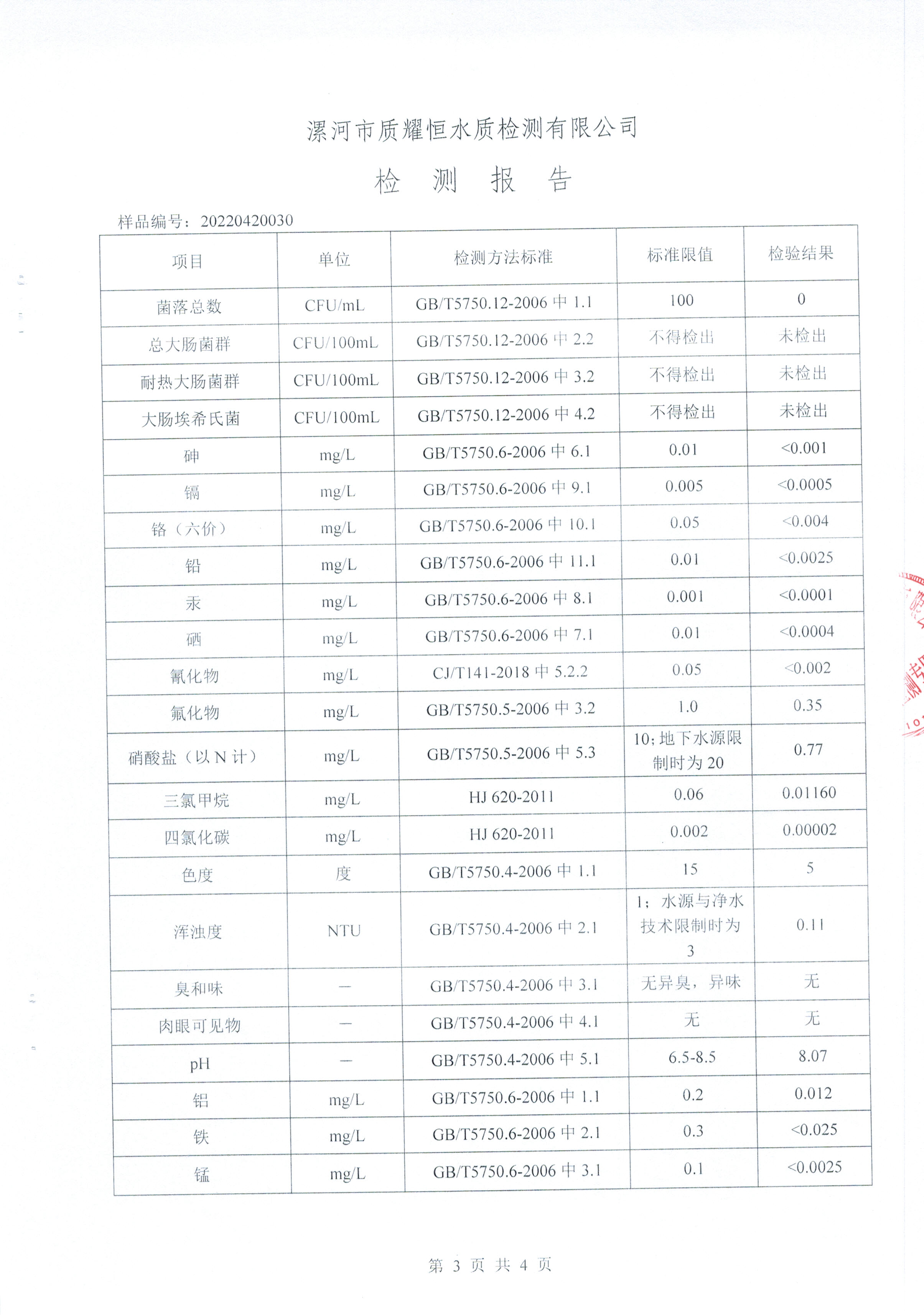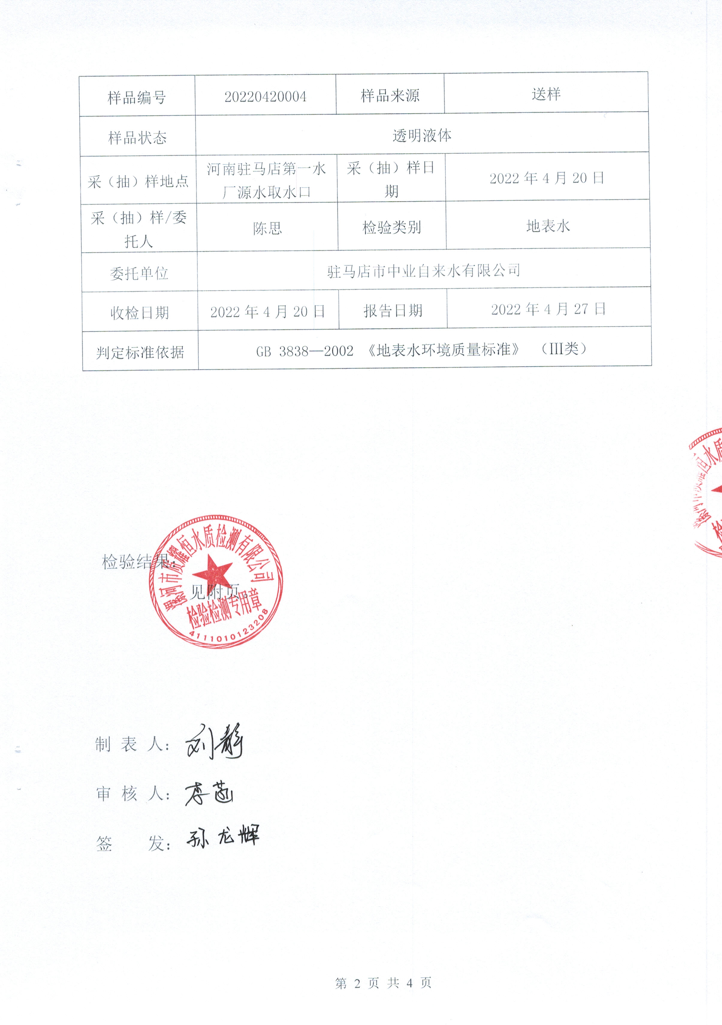 2022年4月水质检测报告