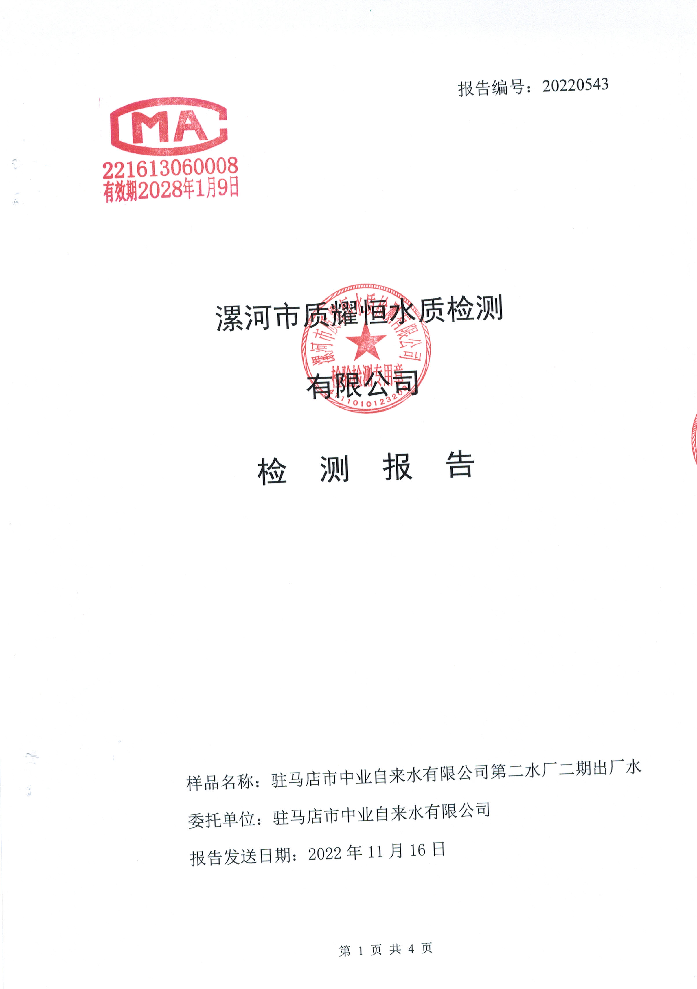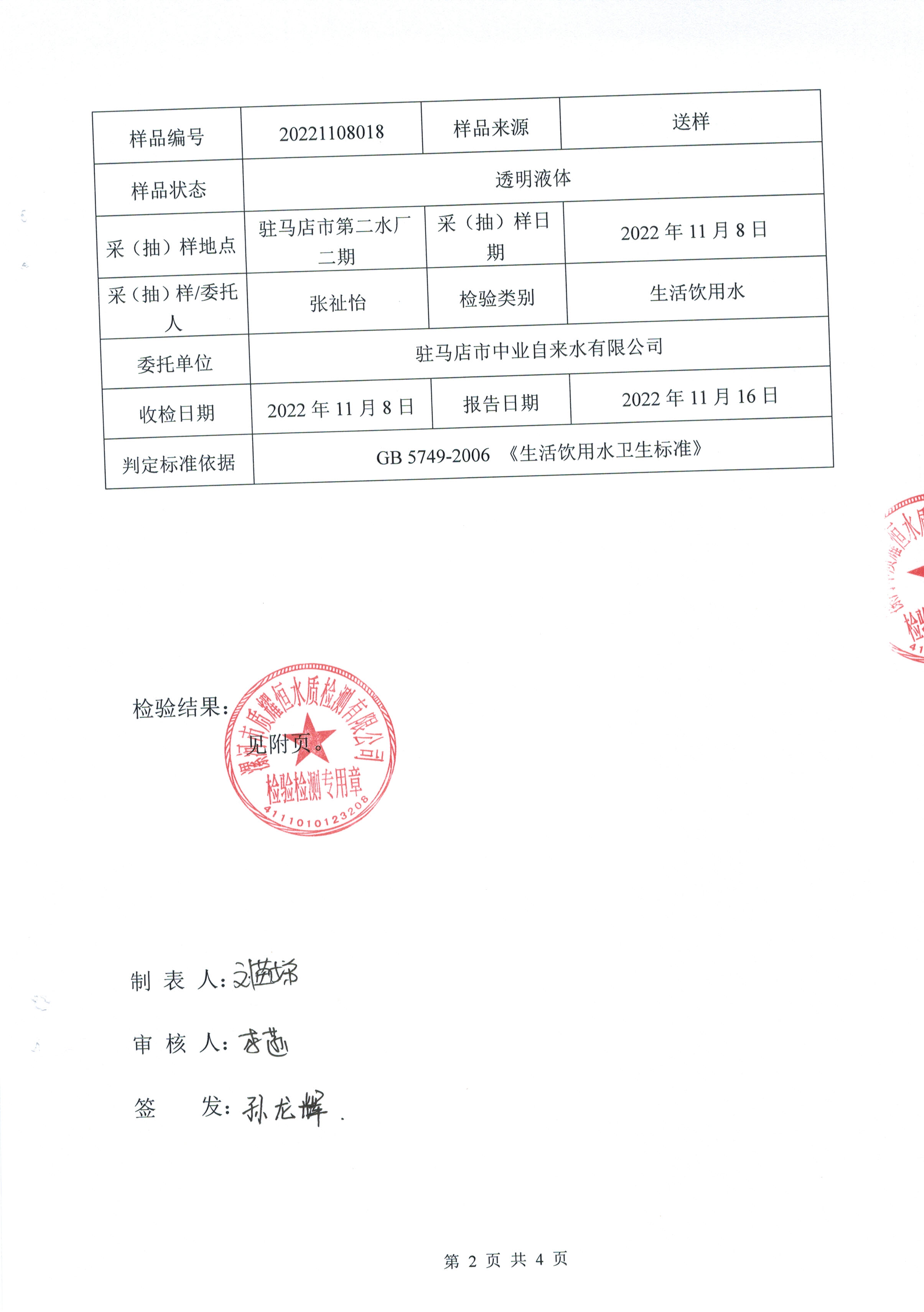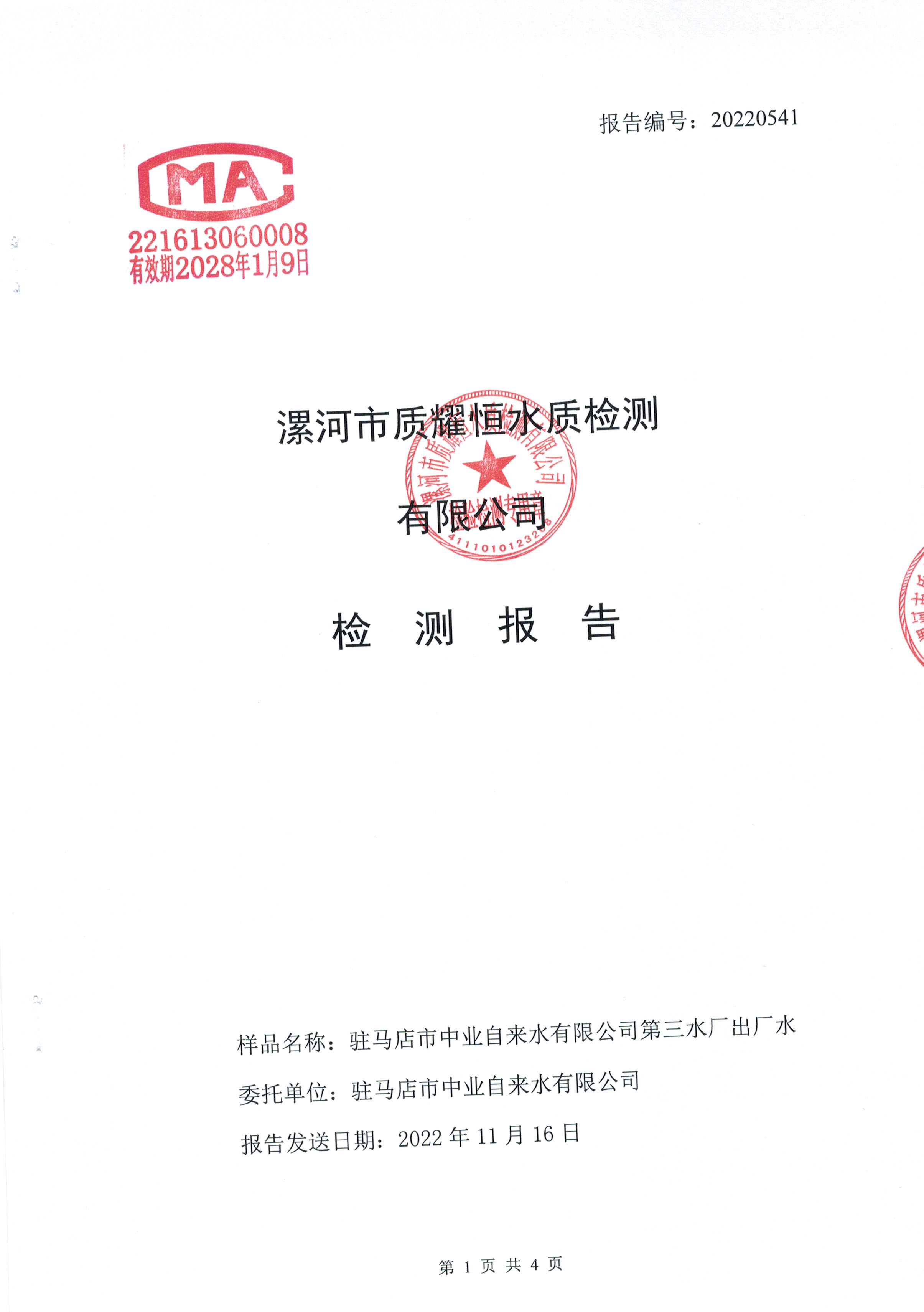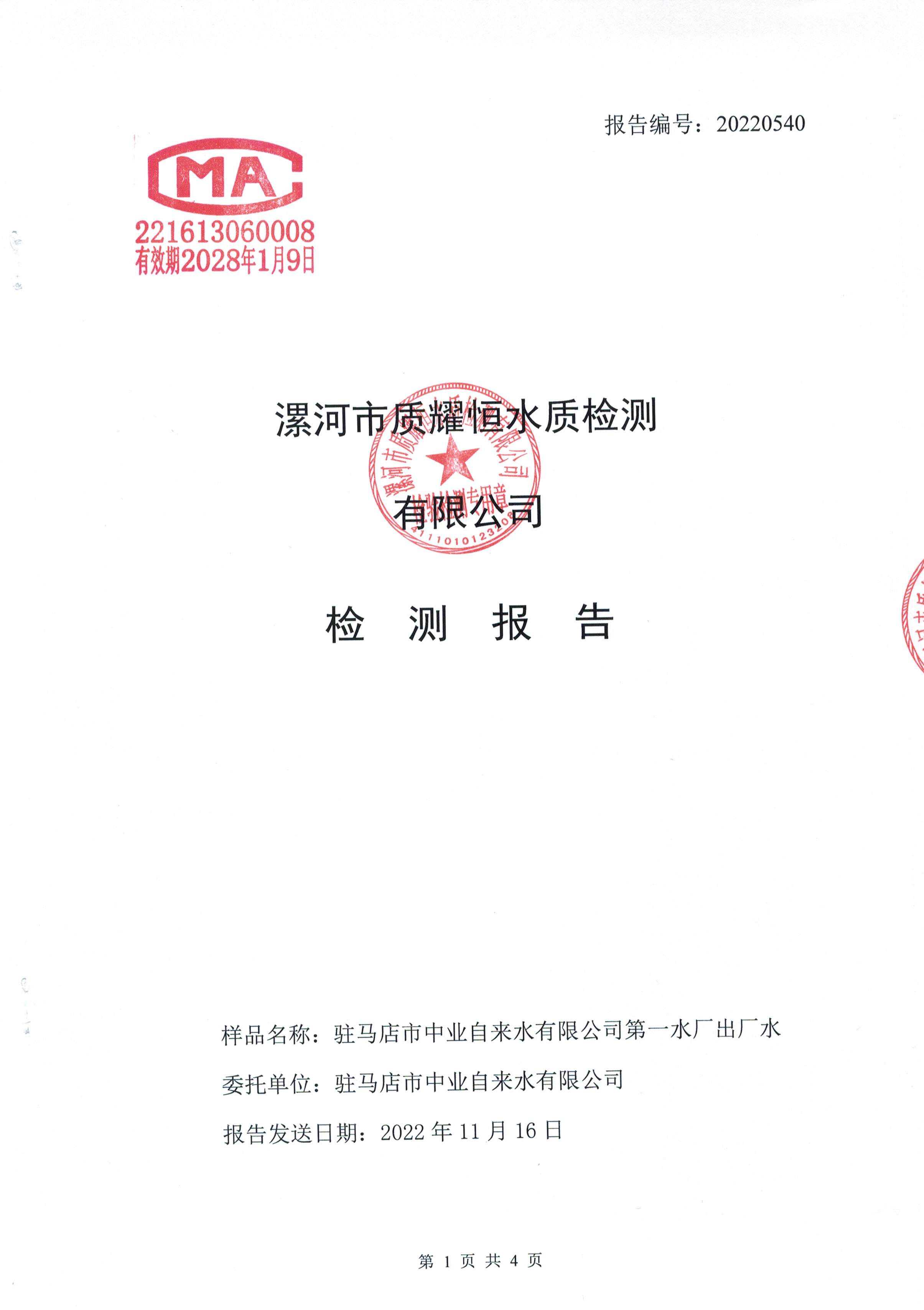 2022年11月水质检测报告