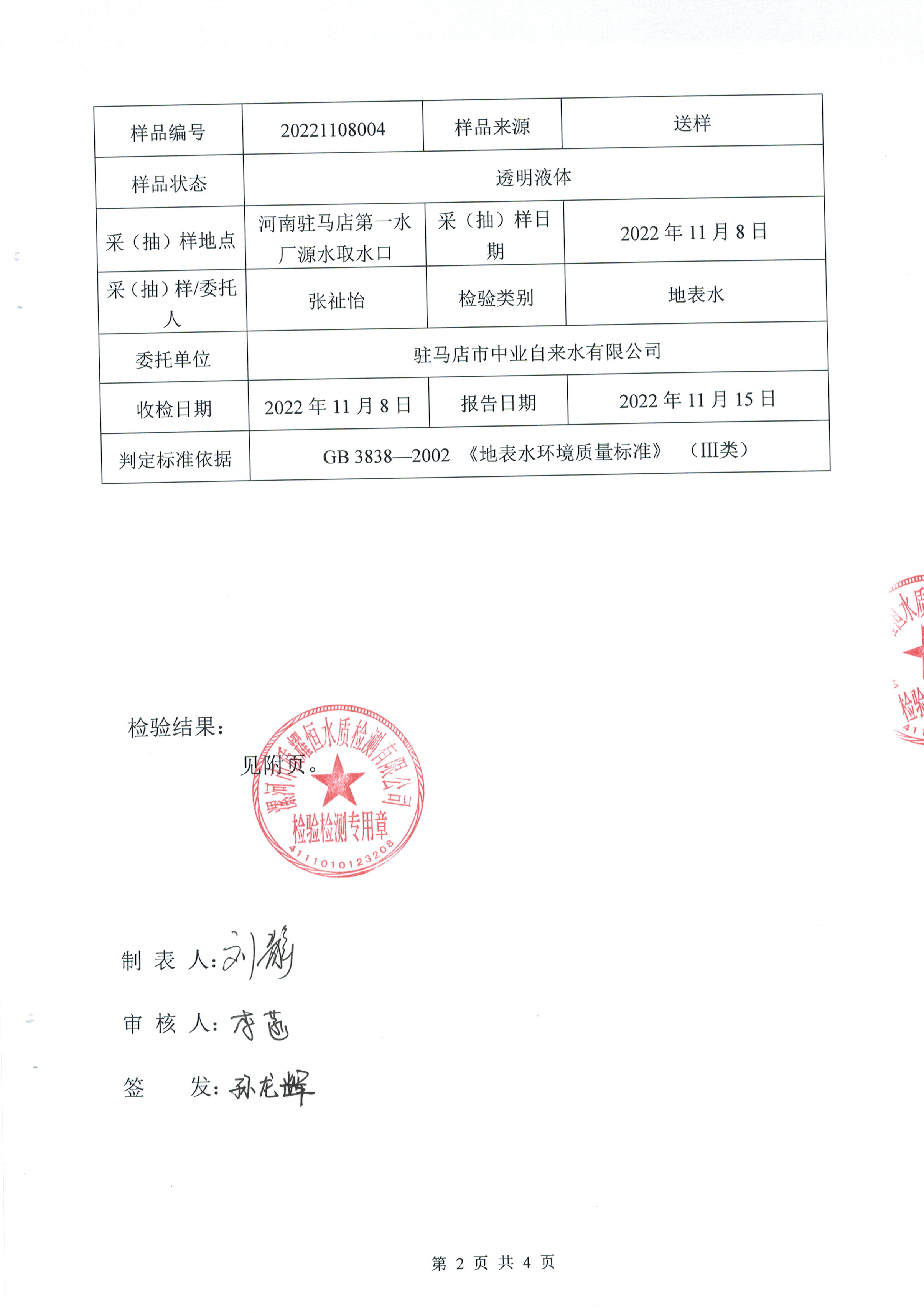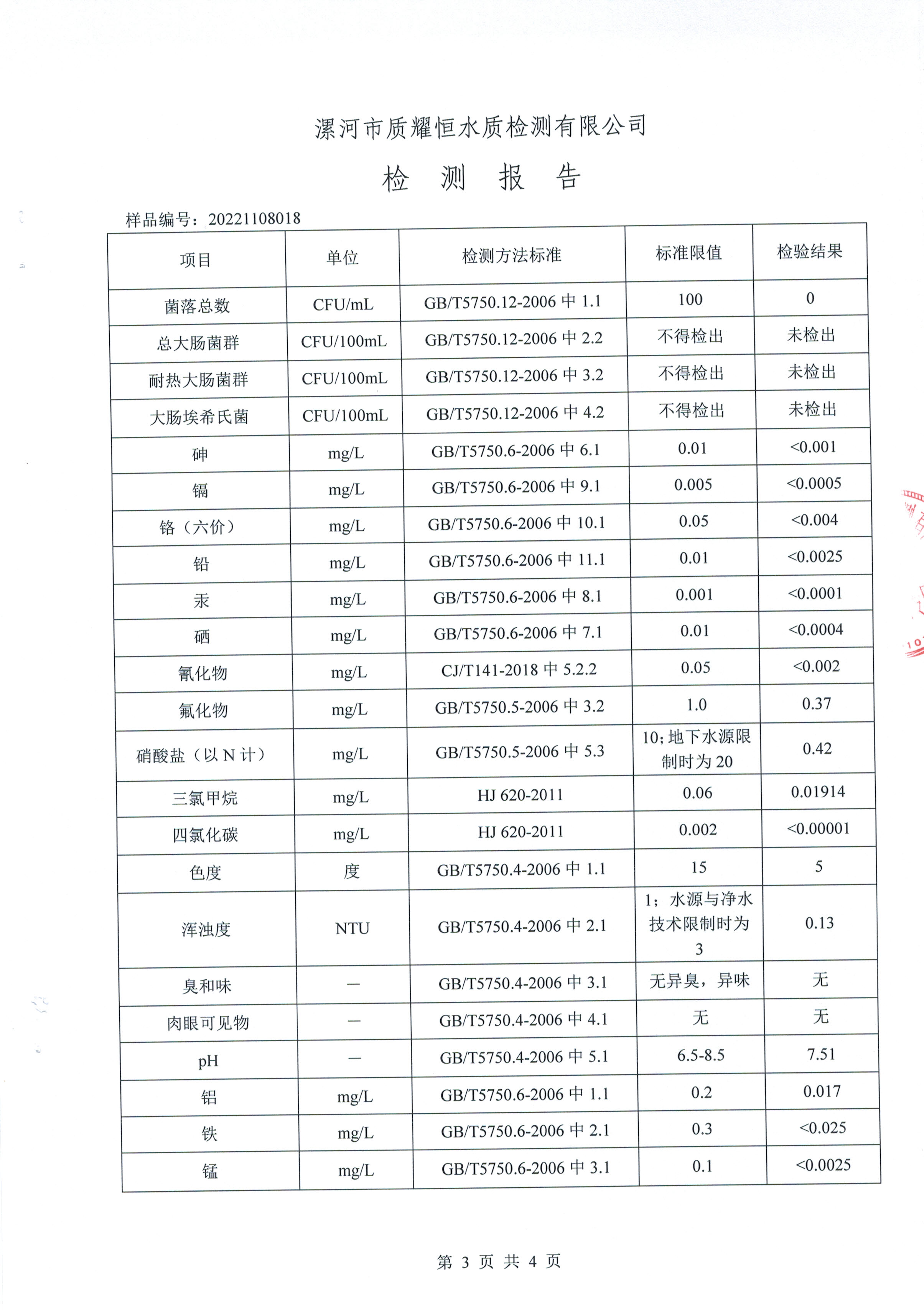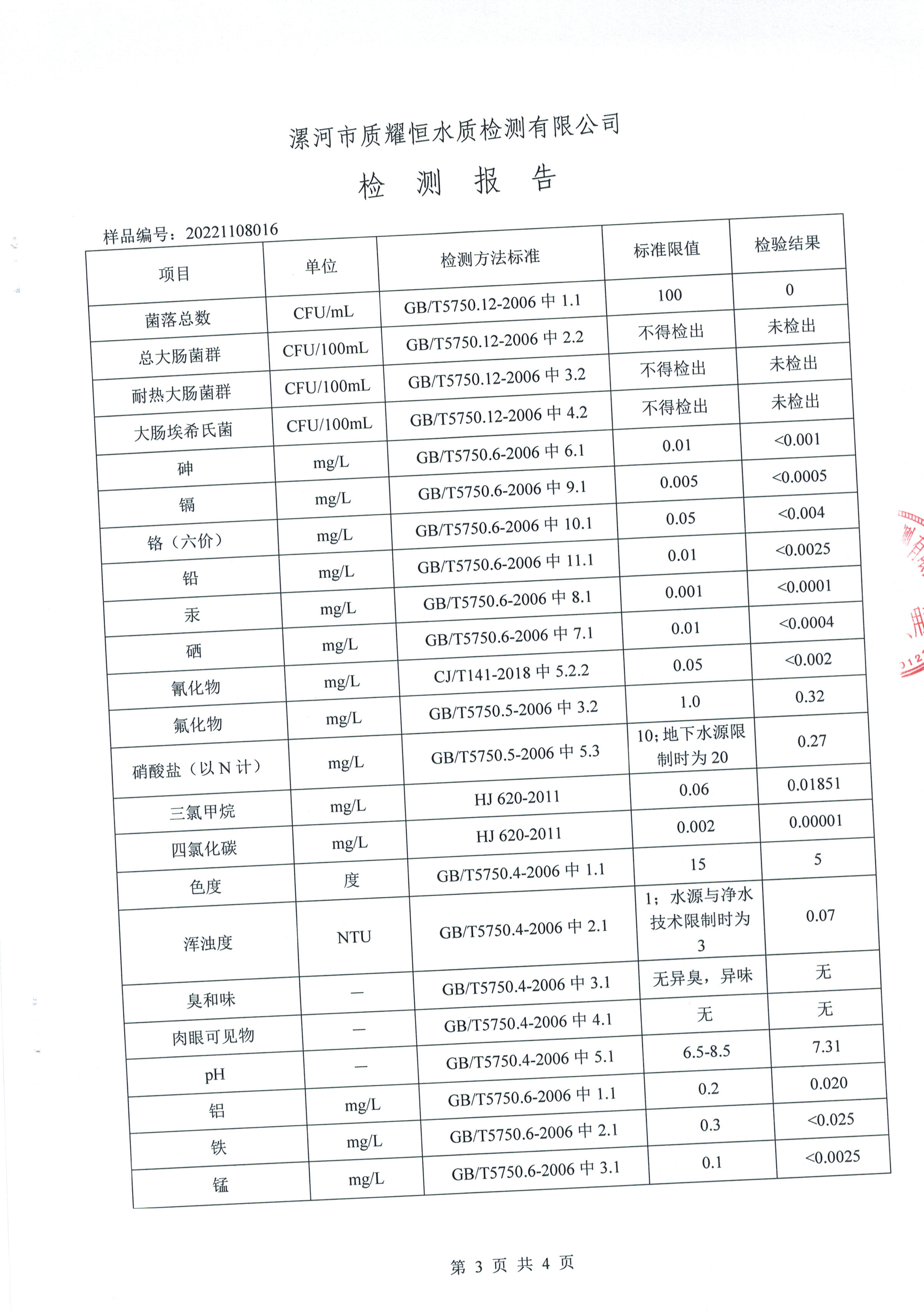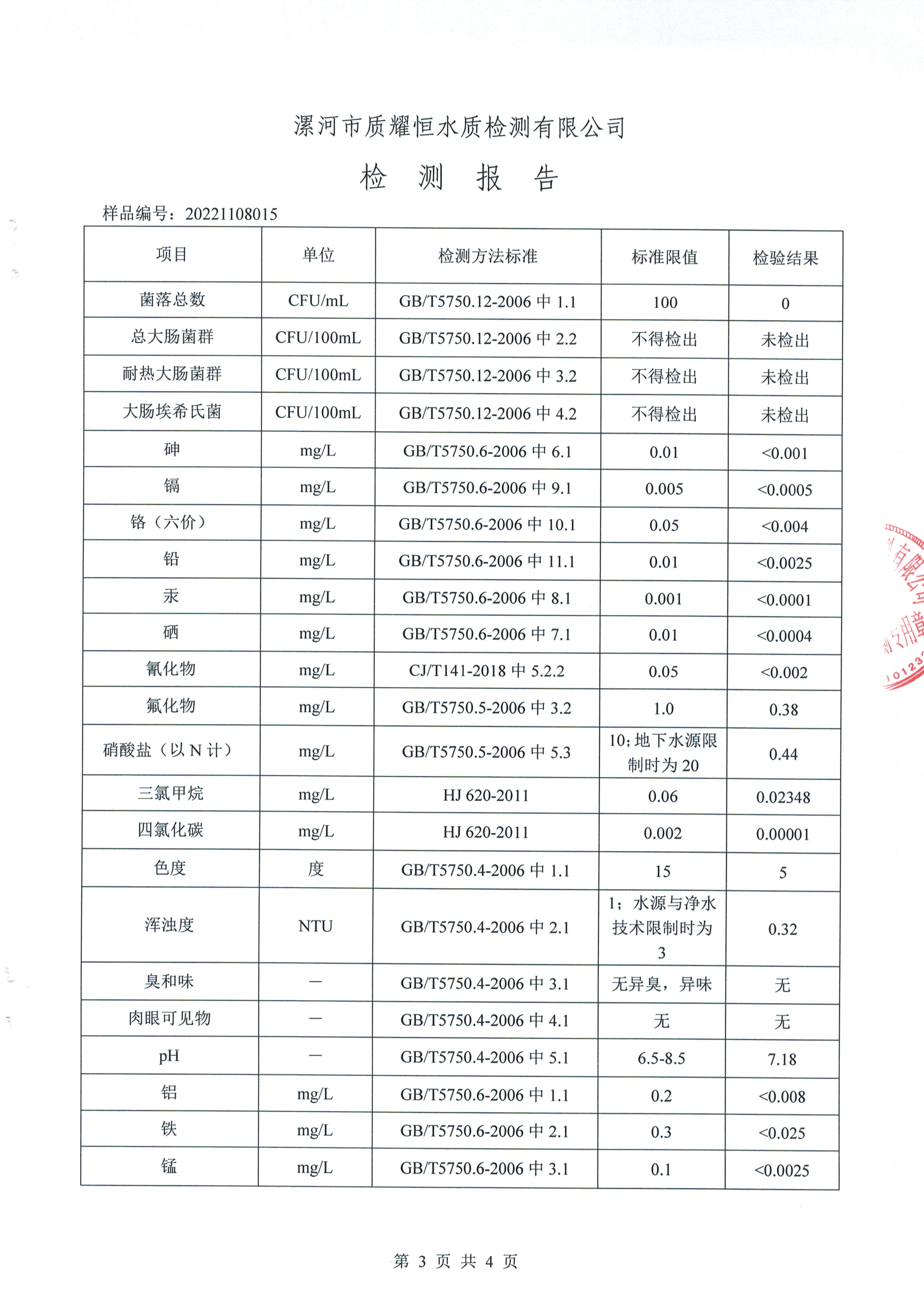 2022年11月水质检测报告