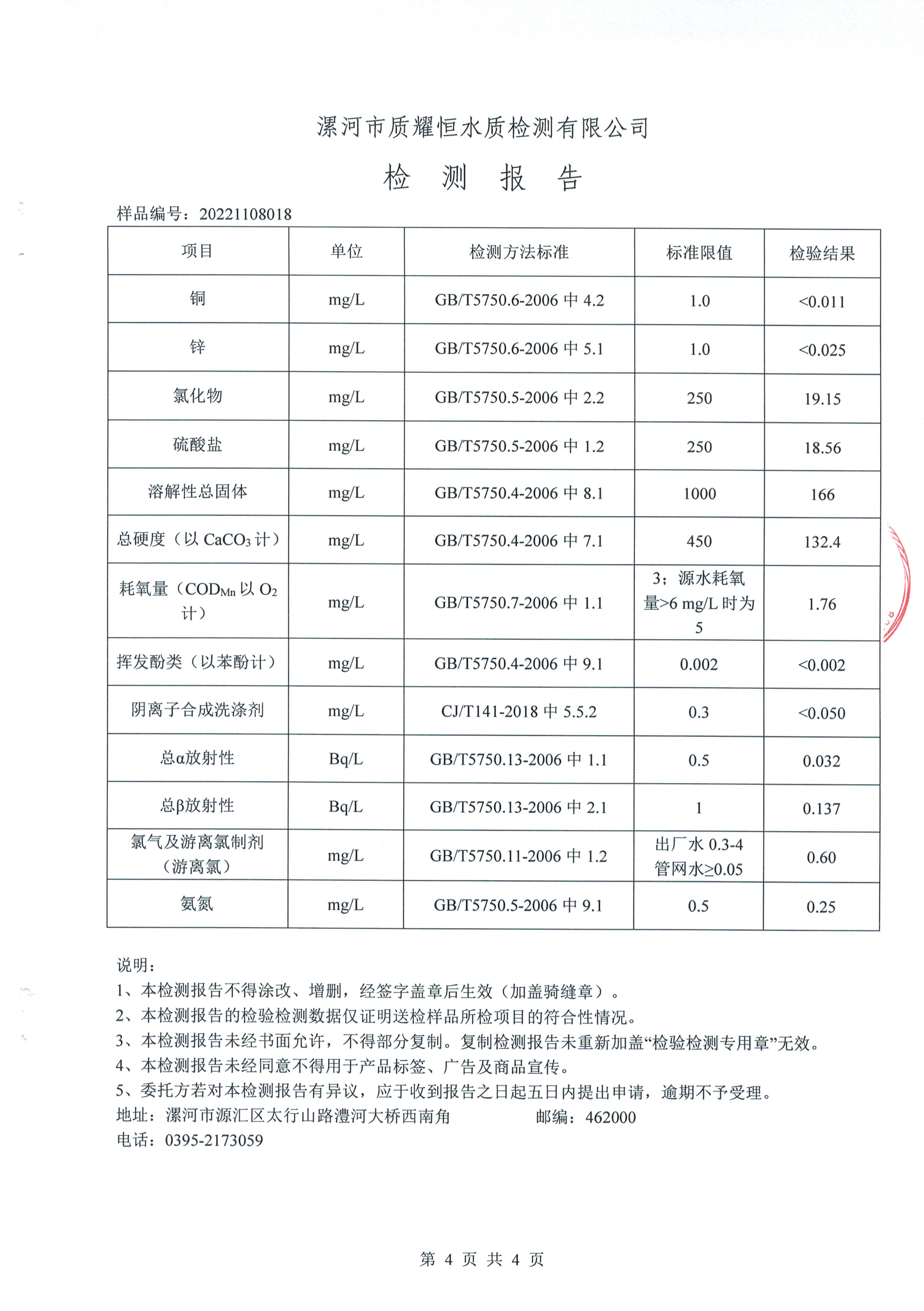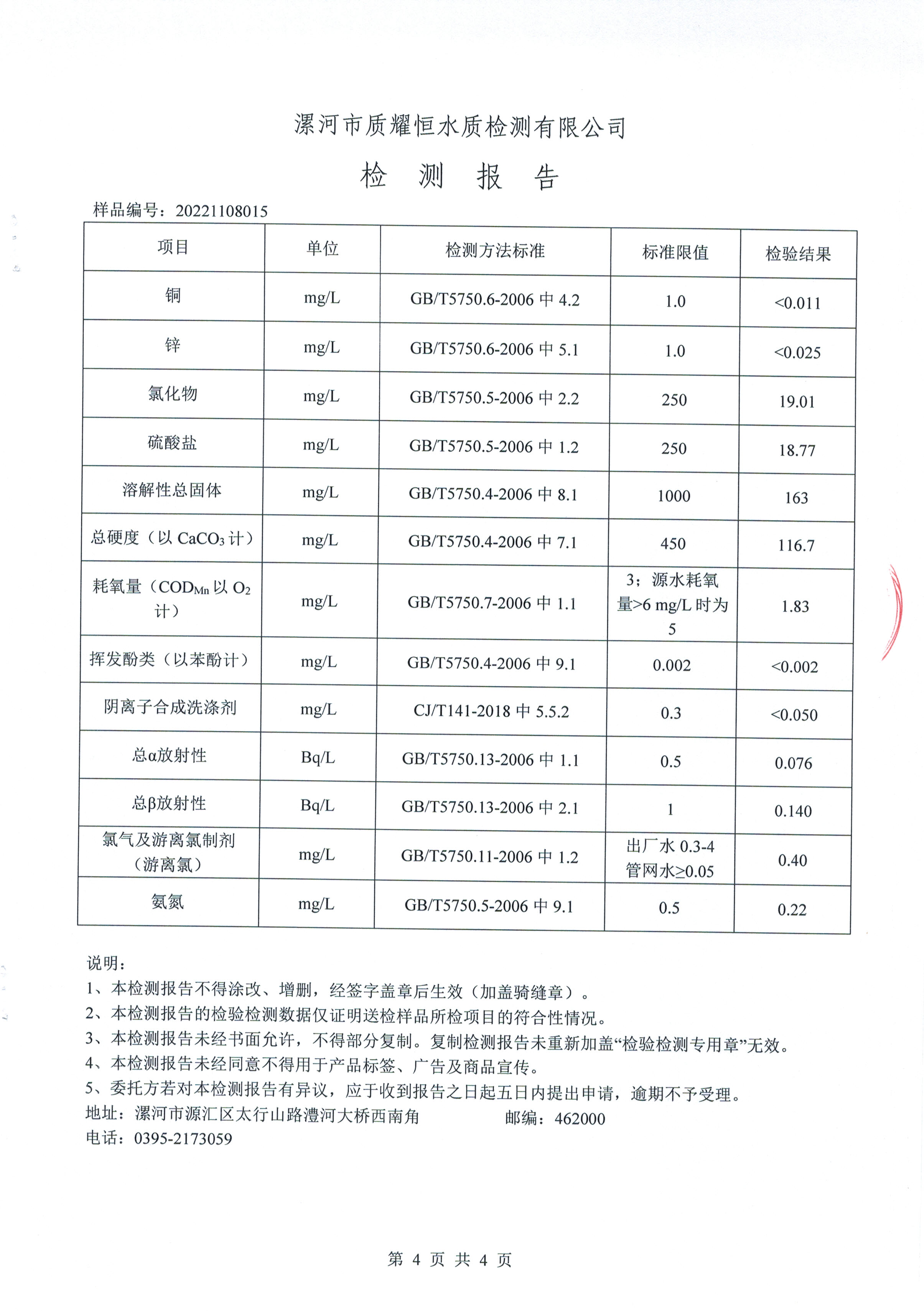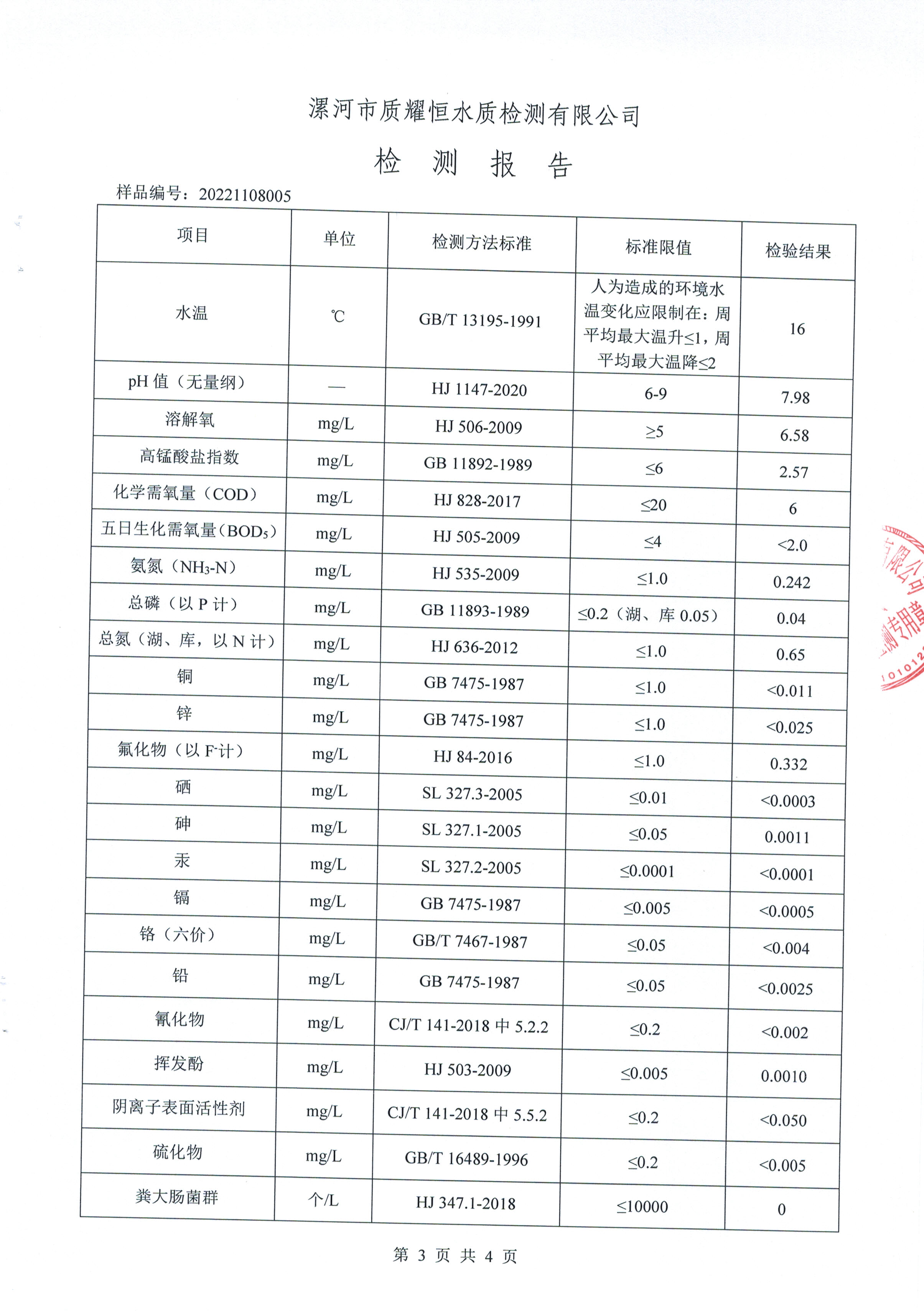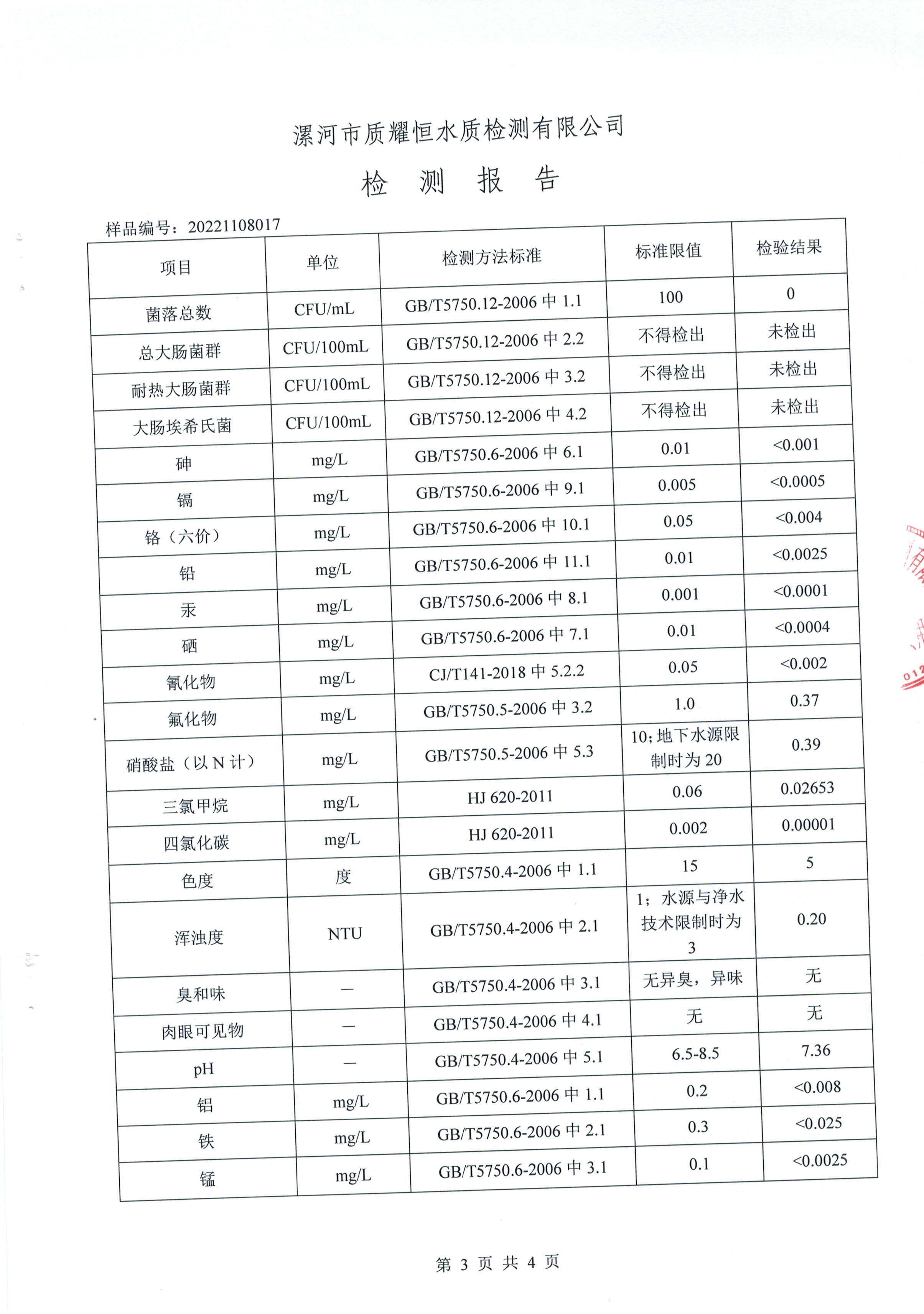 2022年11月水质检测报告