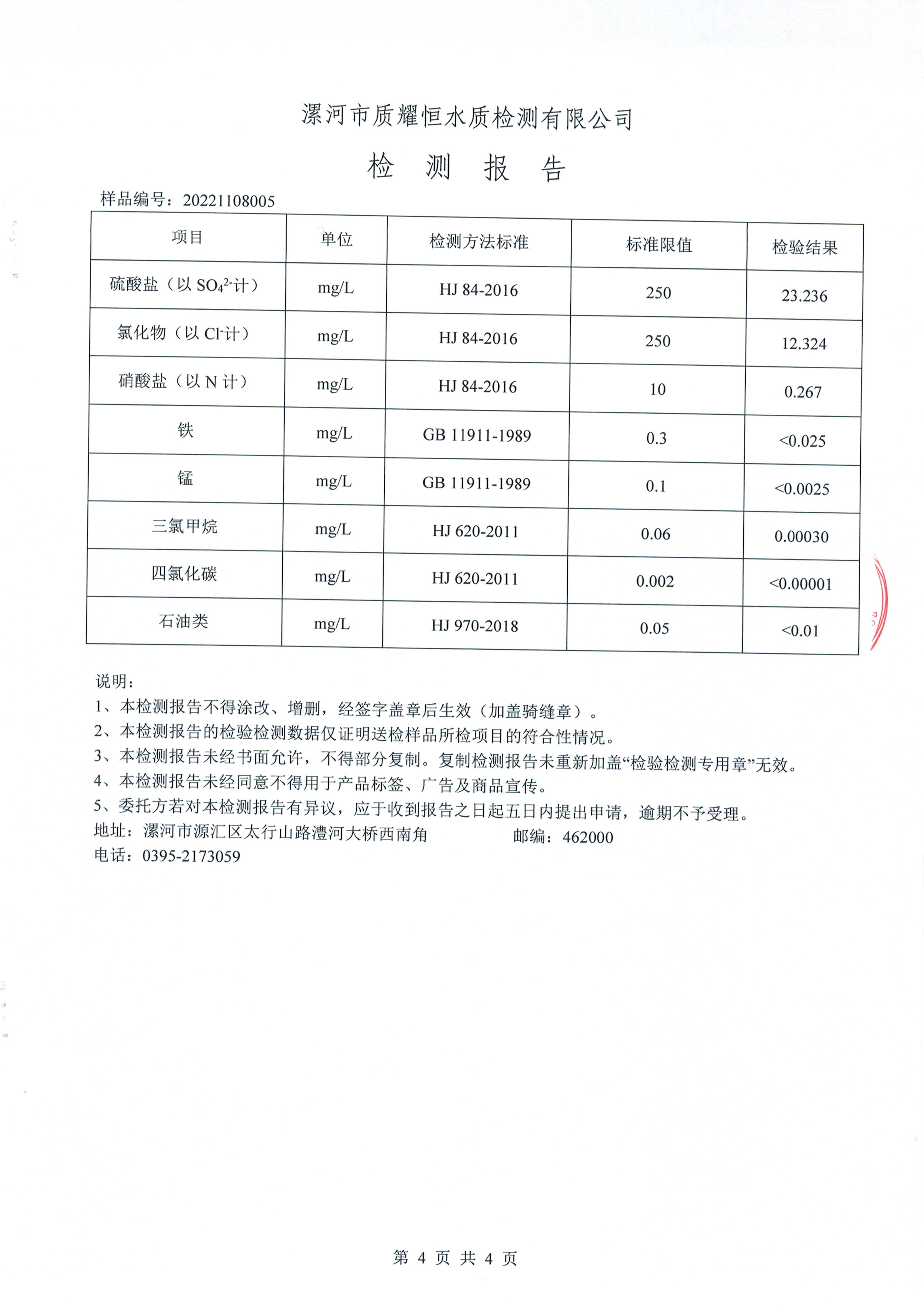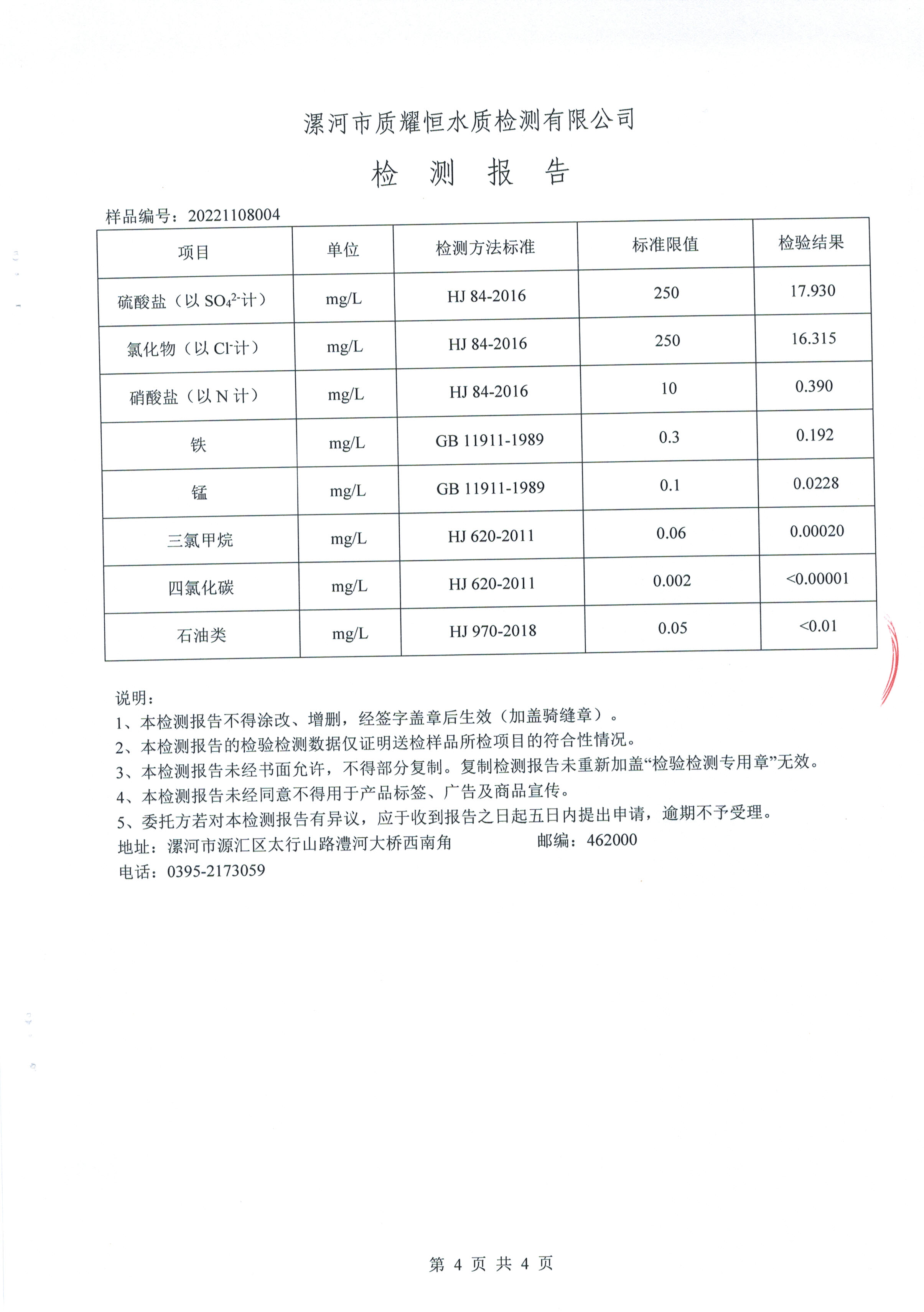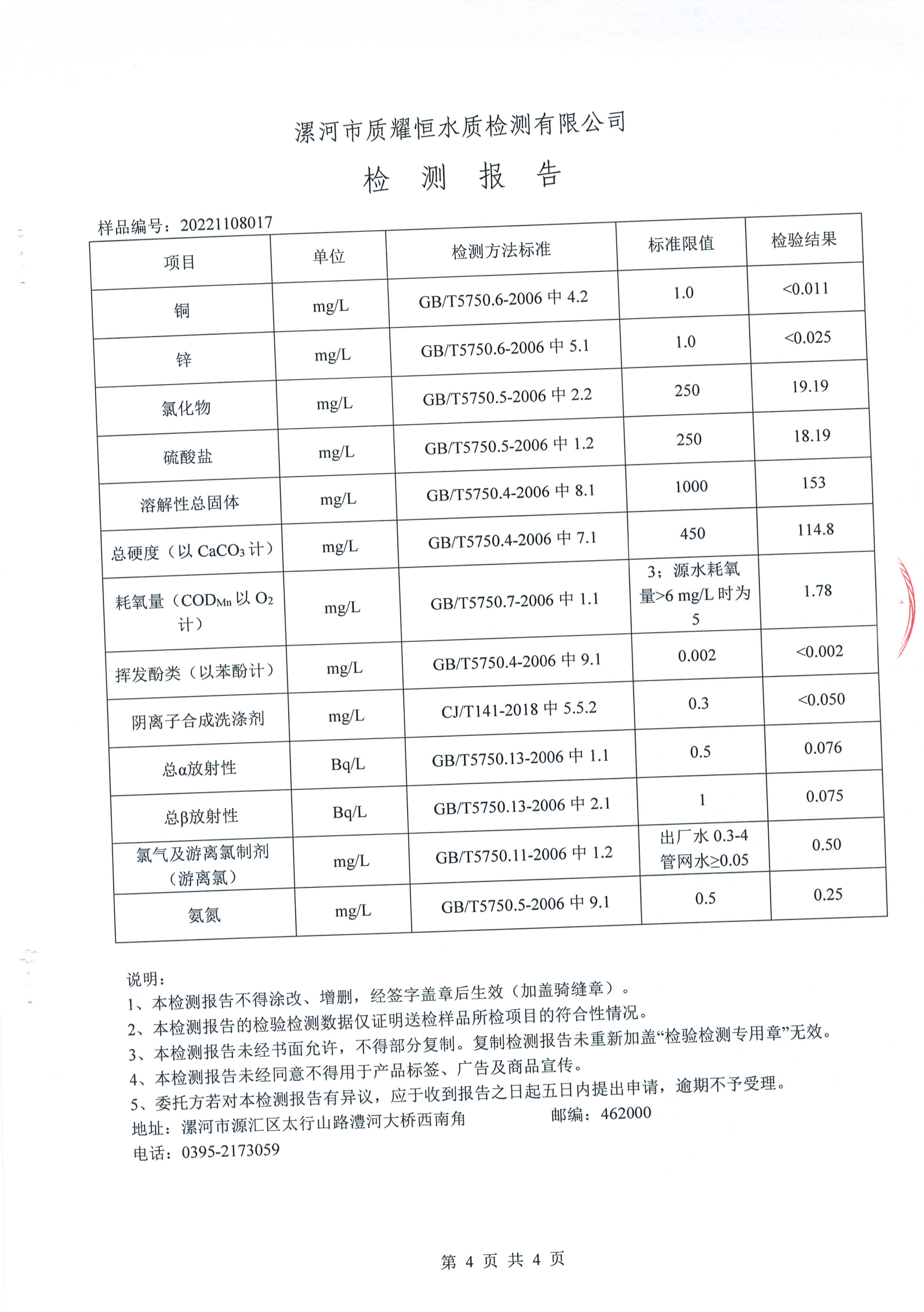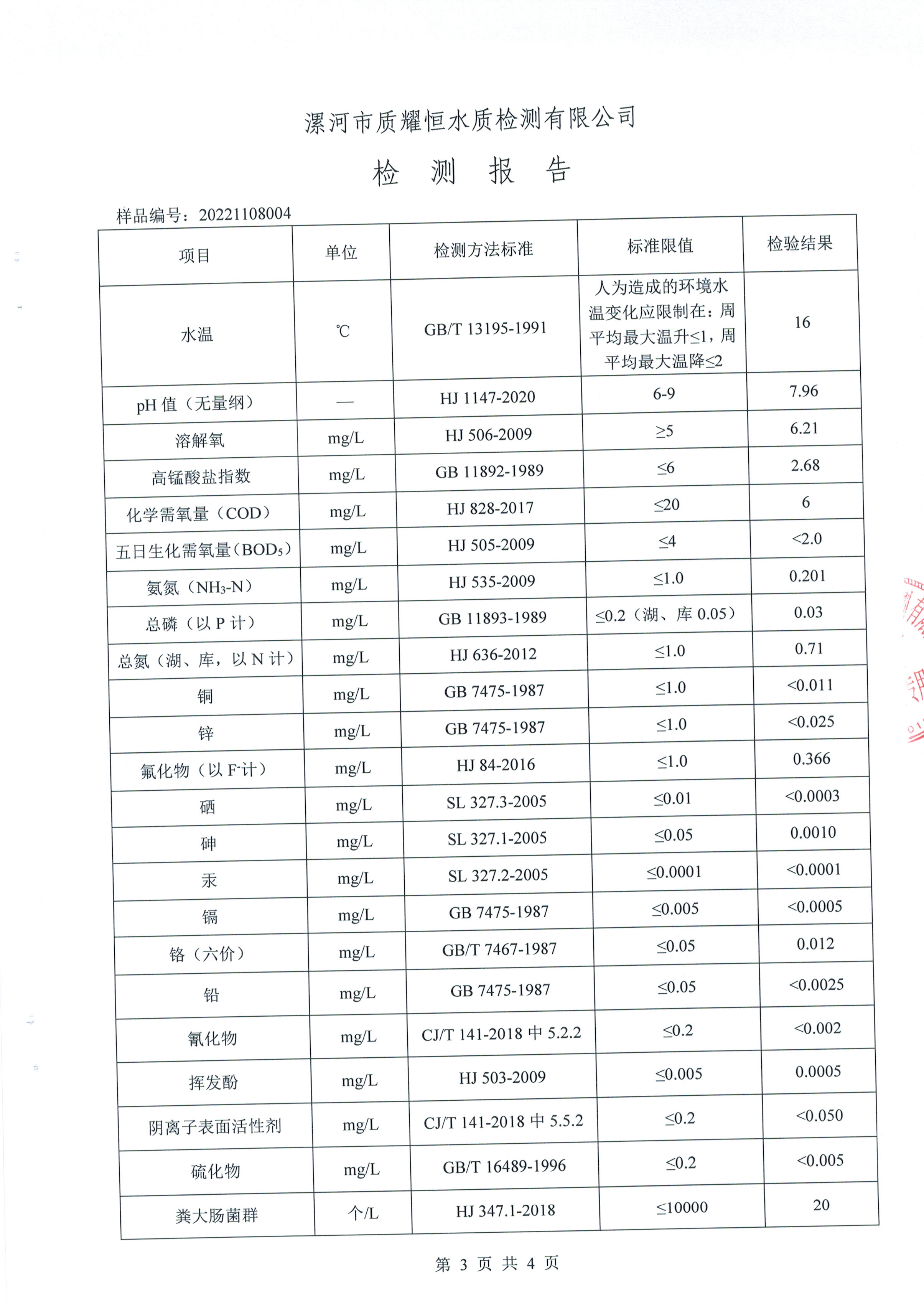 2022年11月水质检测报告