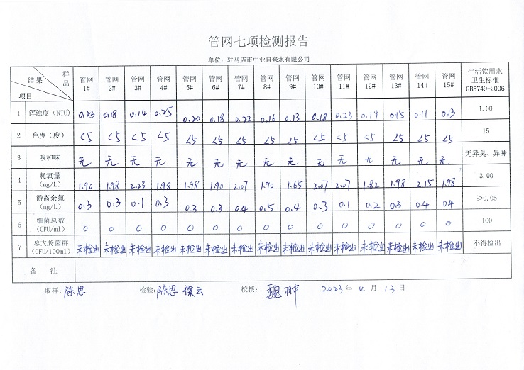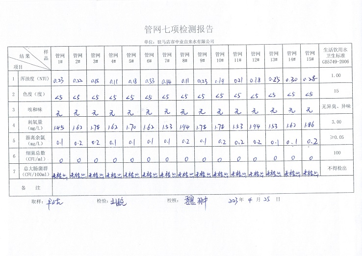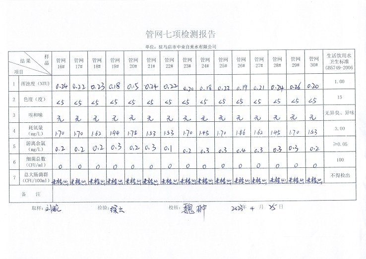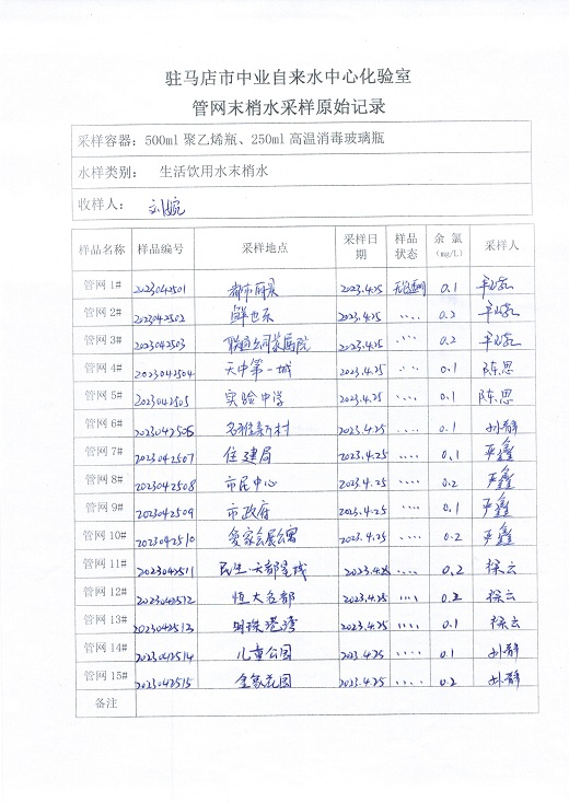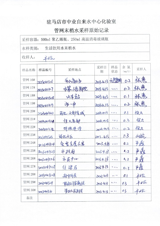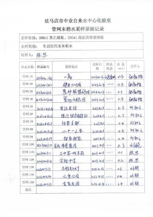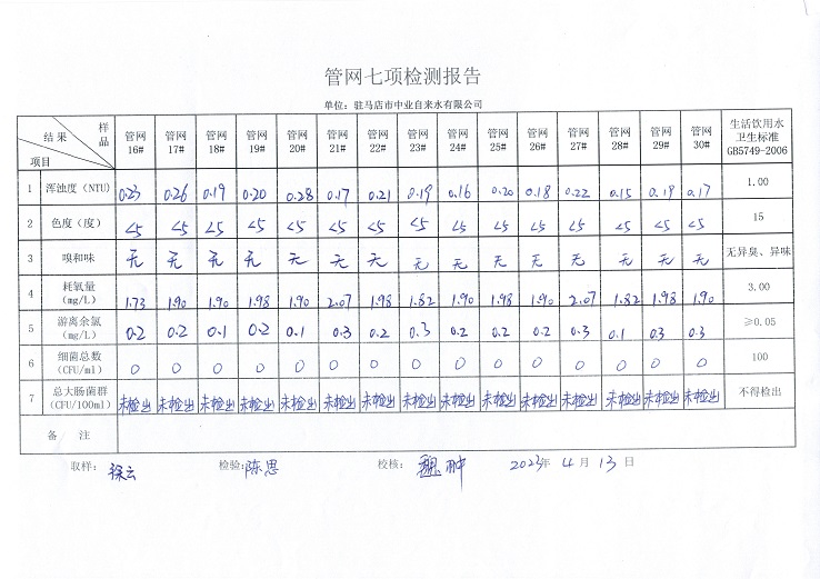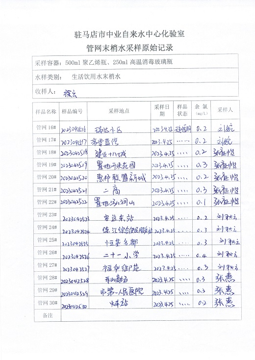 2023年4月管网水质监测数据
