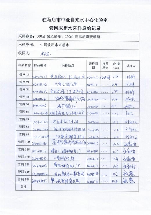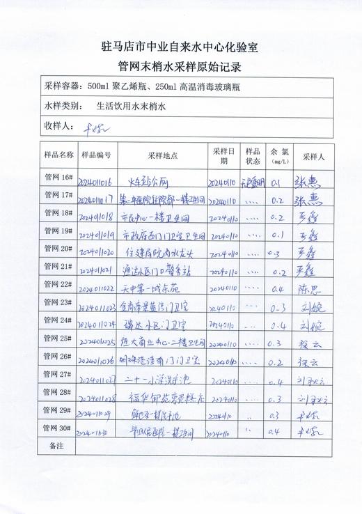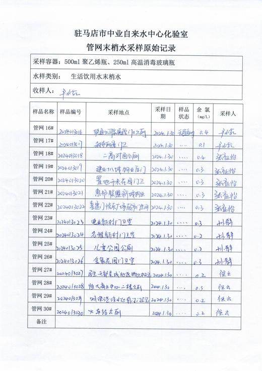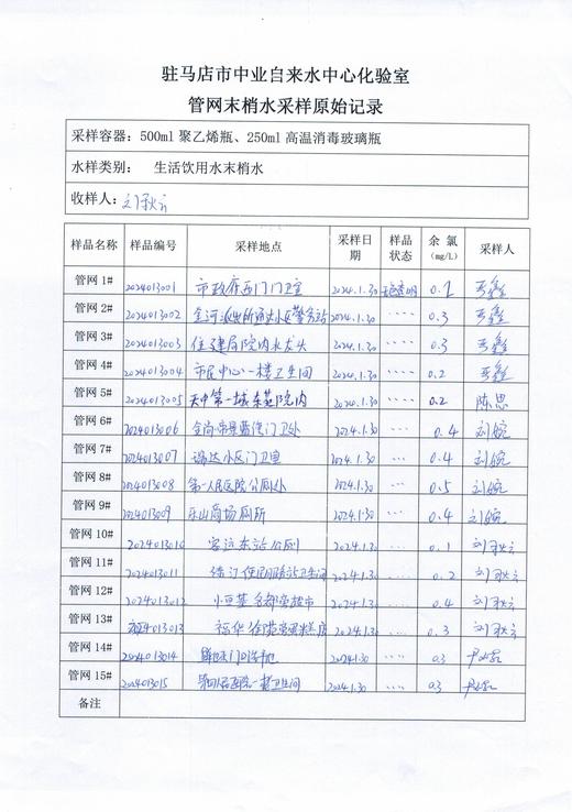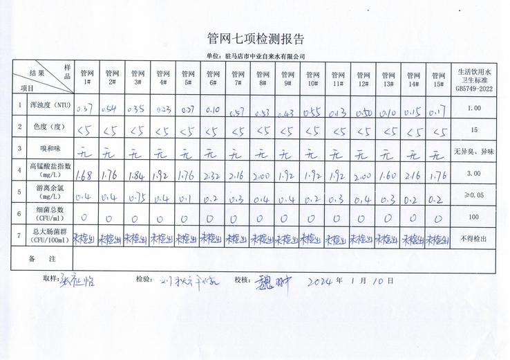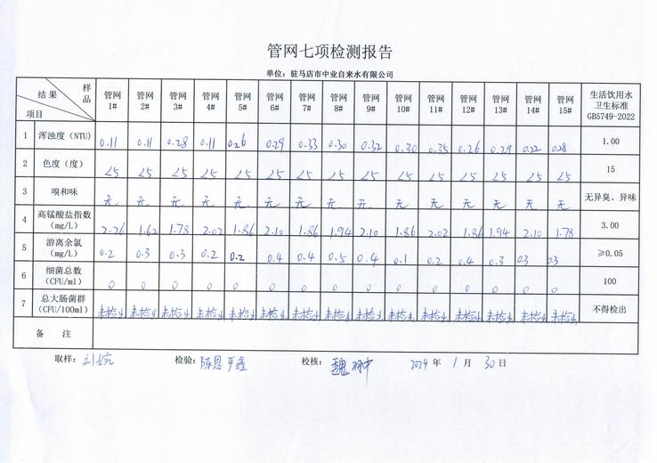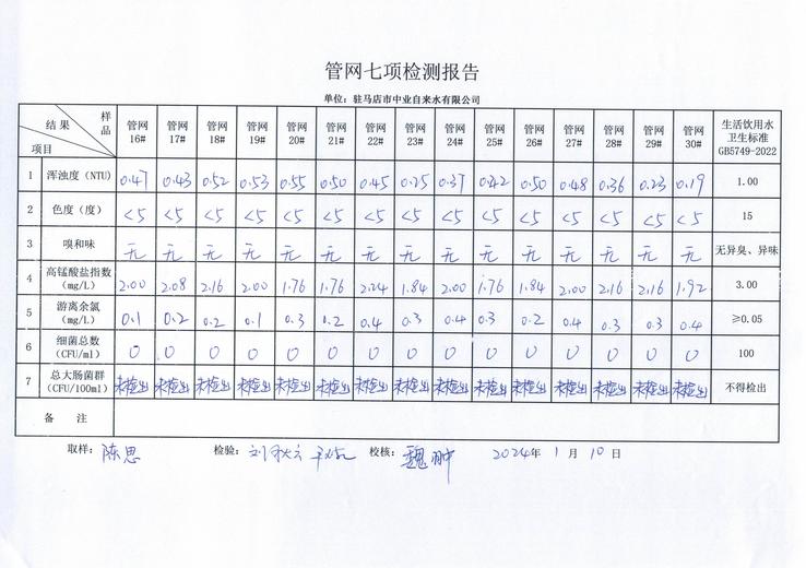 2024年1月管网水质监测数据