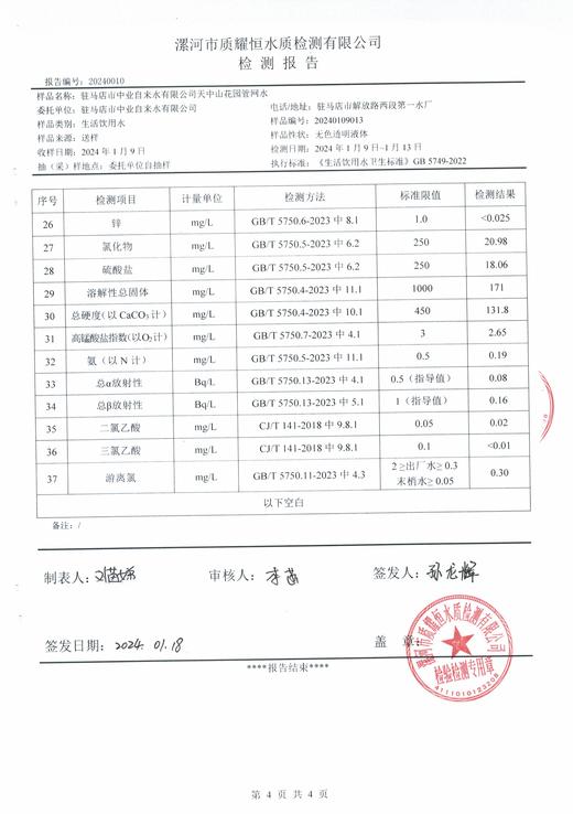 驻马店市中业自来水有限公司