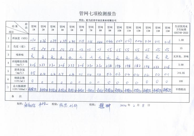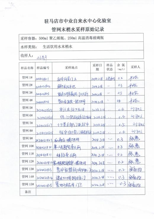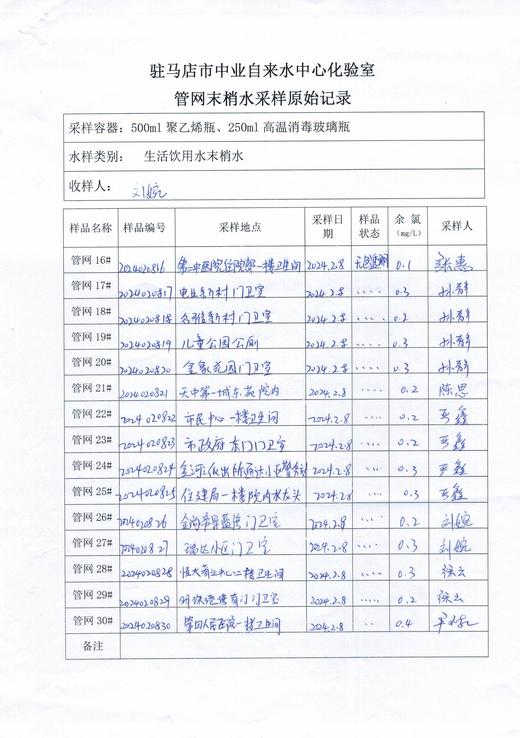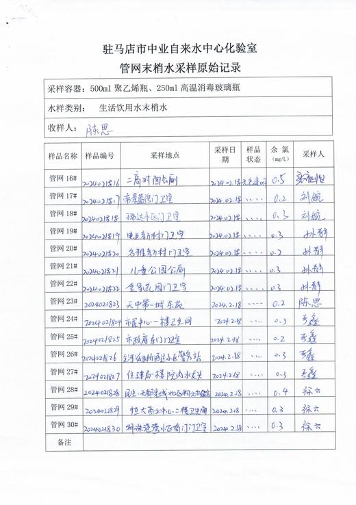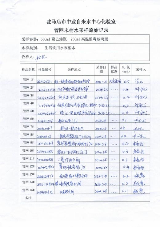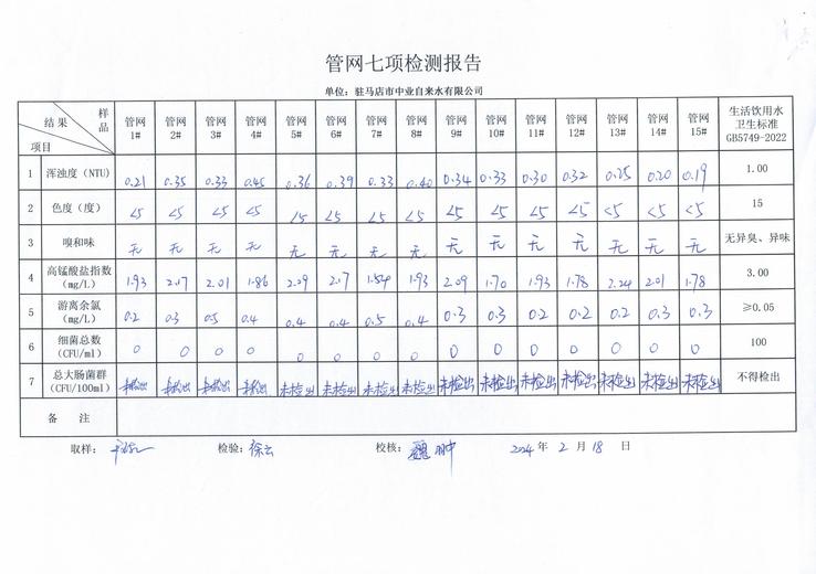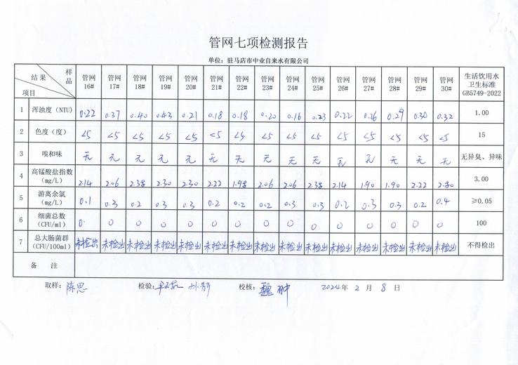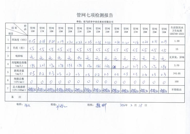 2024年2月管网水质监测数据