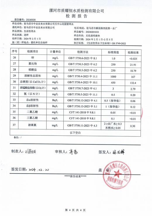 驻马店市中业自来水有限公司