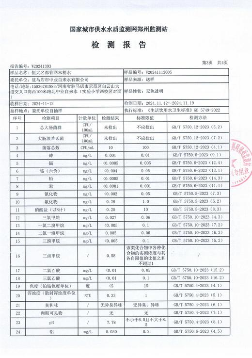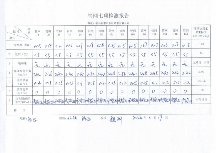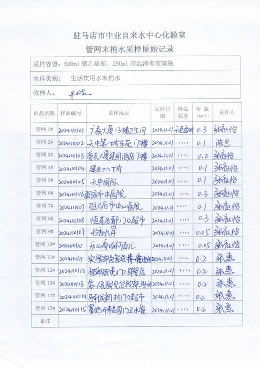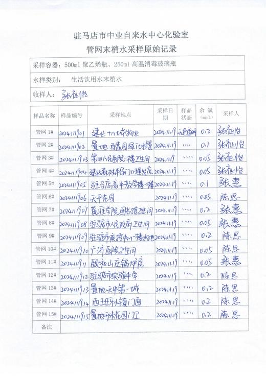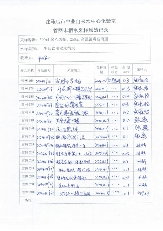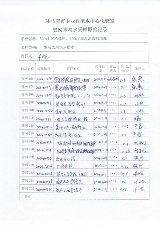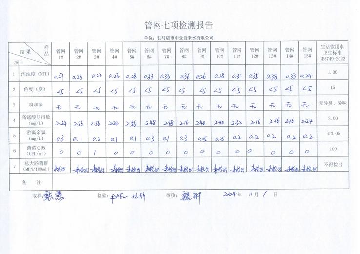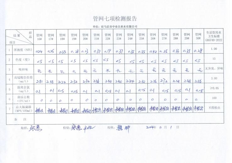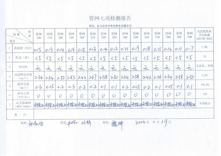 2024年11月管网水质监测数据