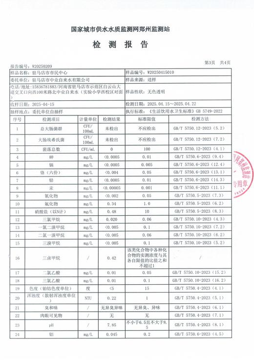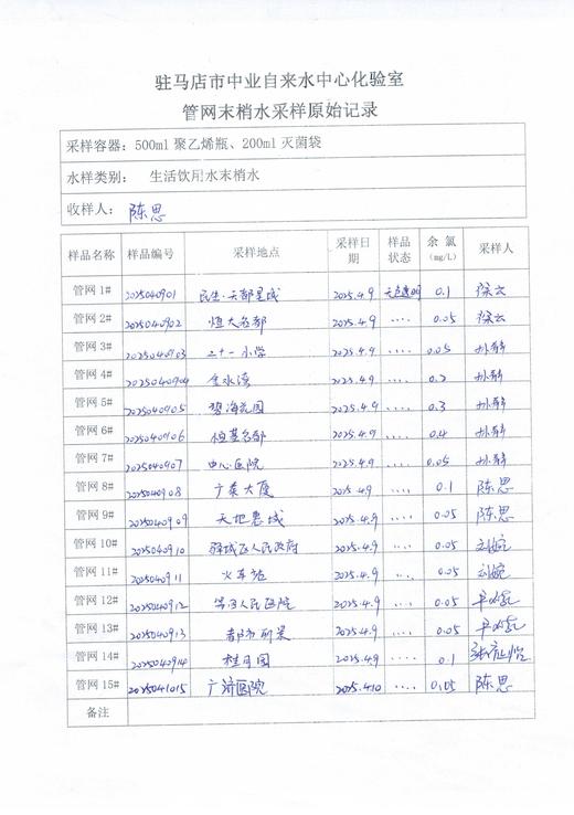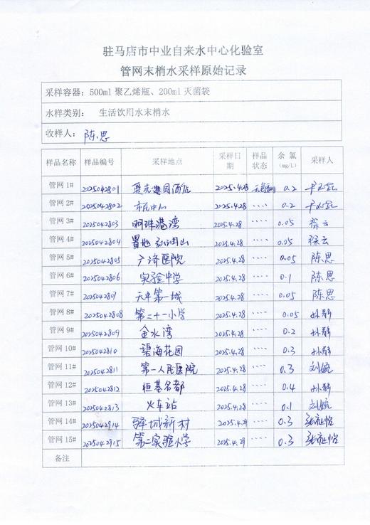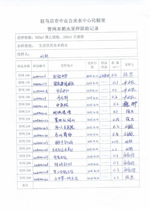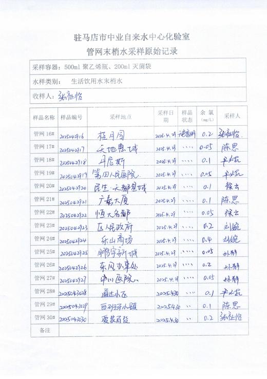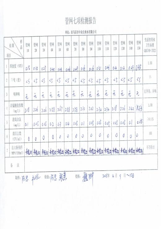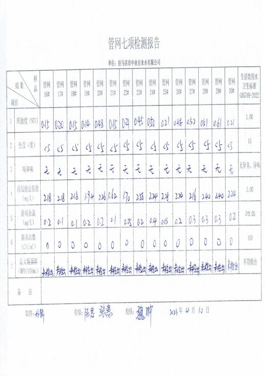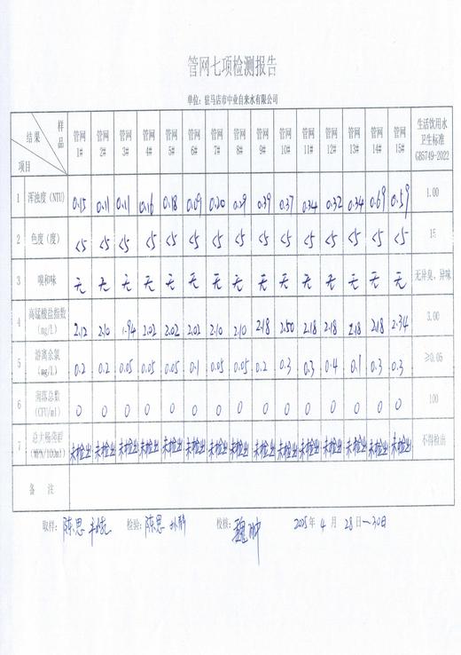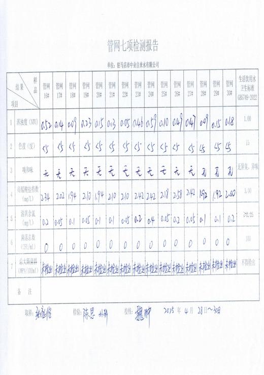 2025年4月管网水质监测数据