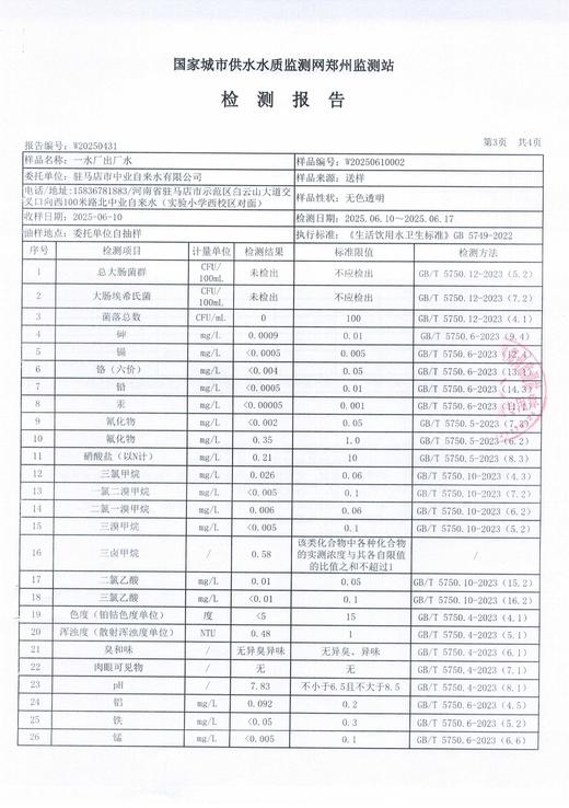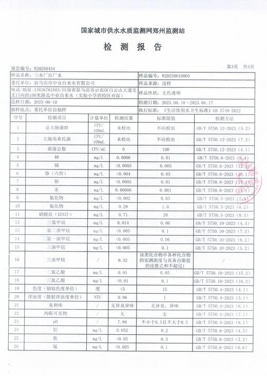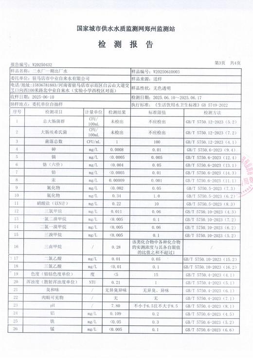 2025年6月水质检测报告