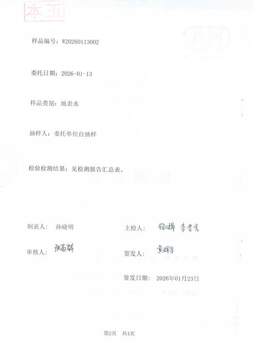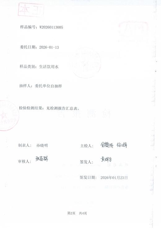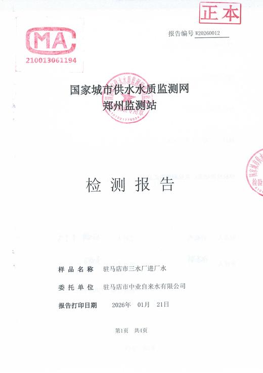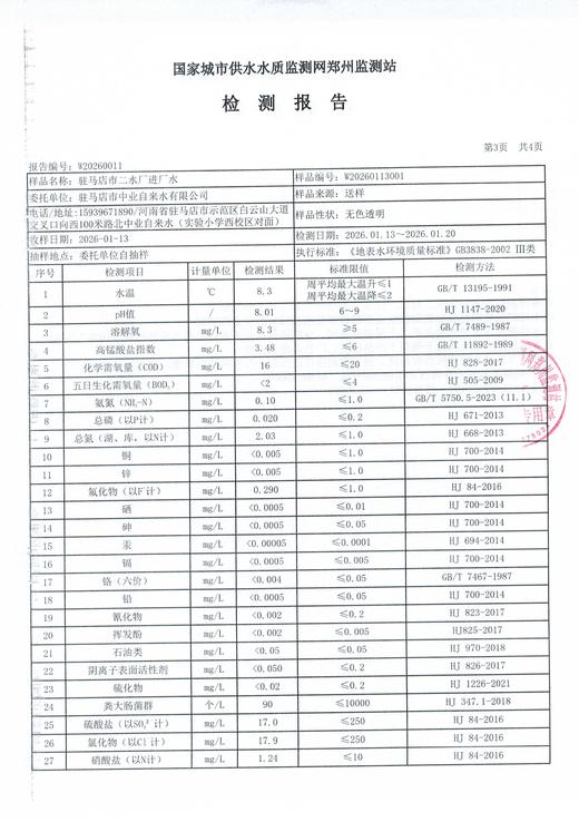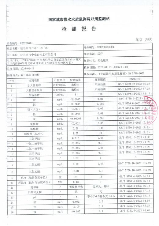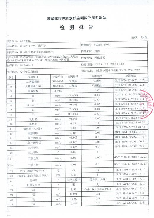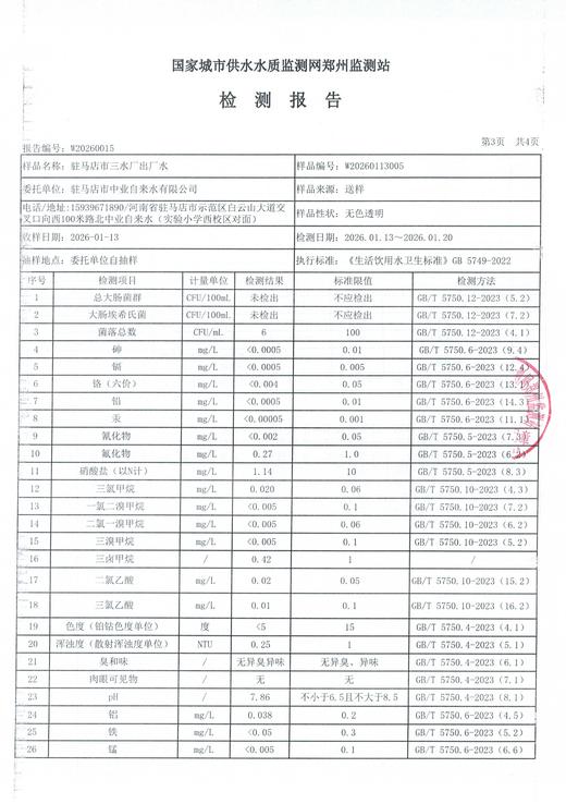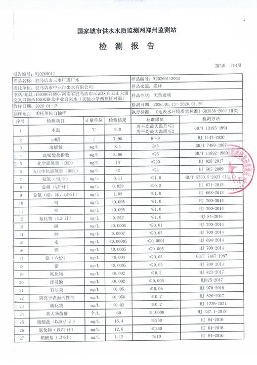 2026年1月水质检测报告