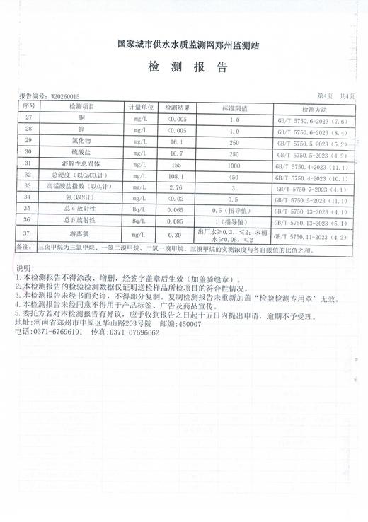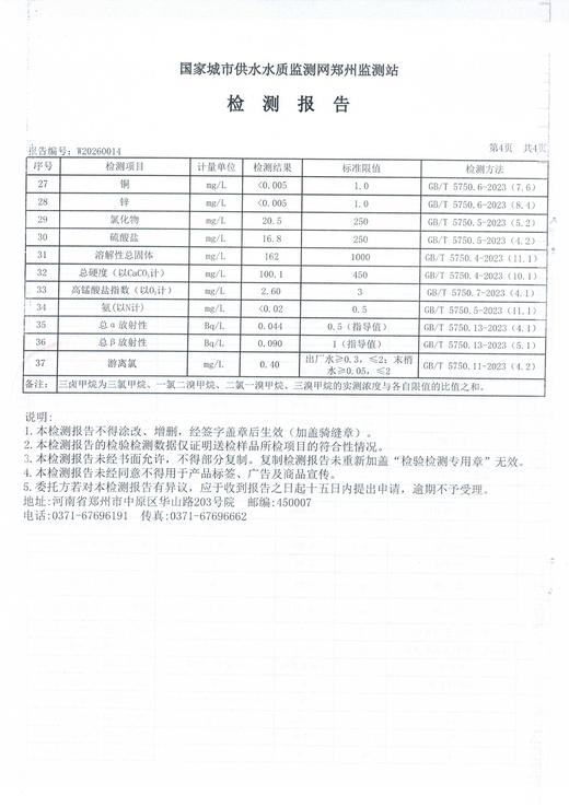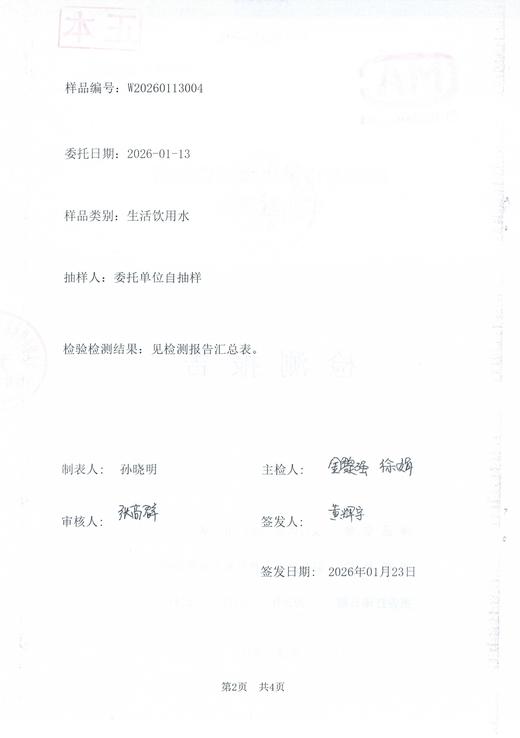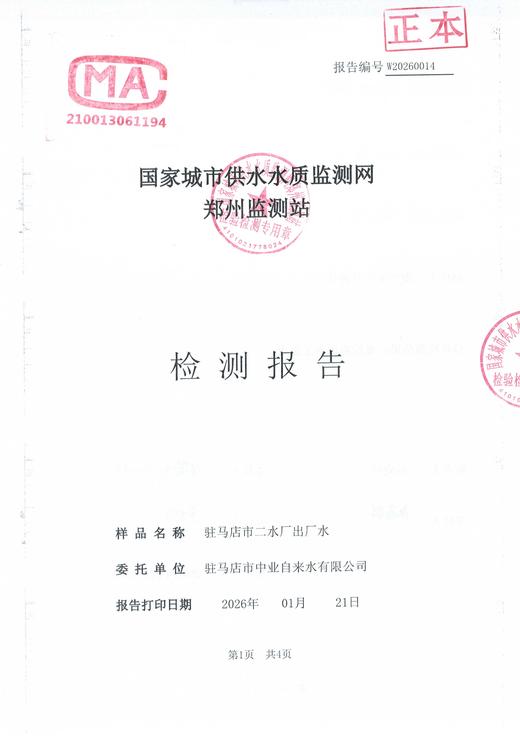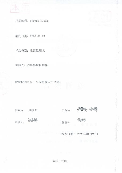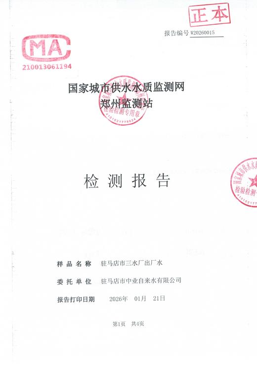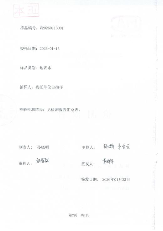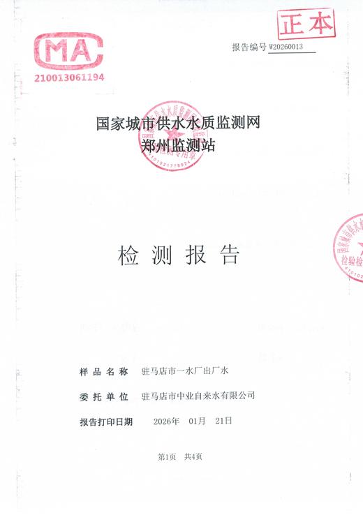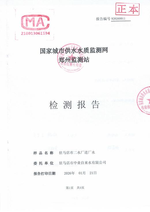2026年1月水质检测报告