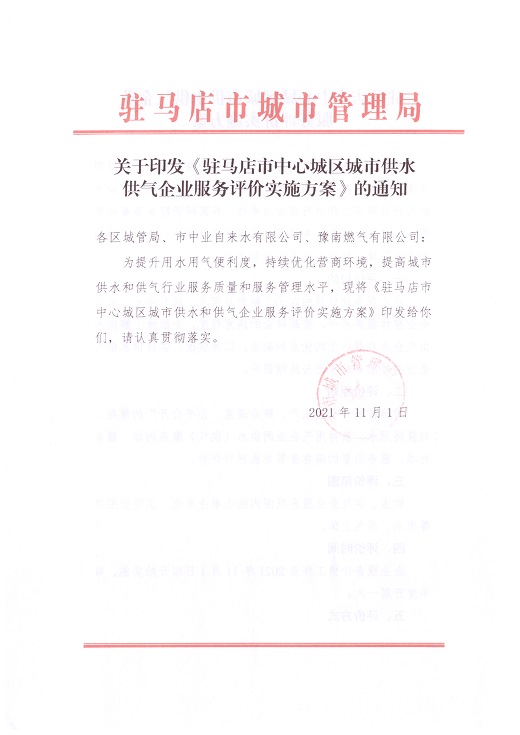 驻水司字〔2021〕89号关于转发《驻马店市城市管理局供水供气报装“四零一优”服务实施工作方案》的通知